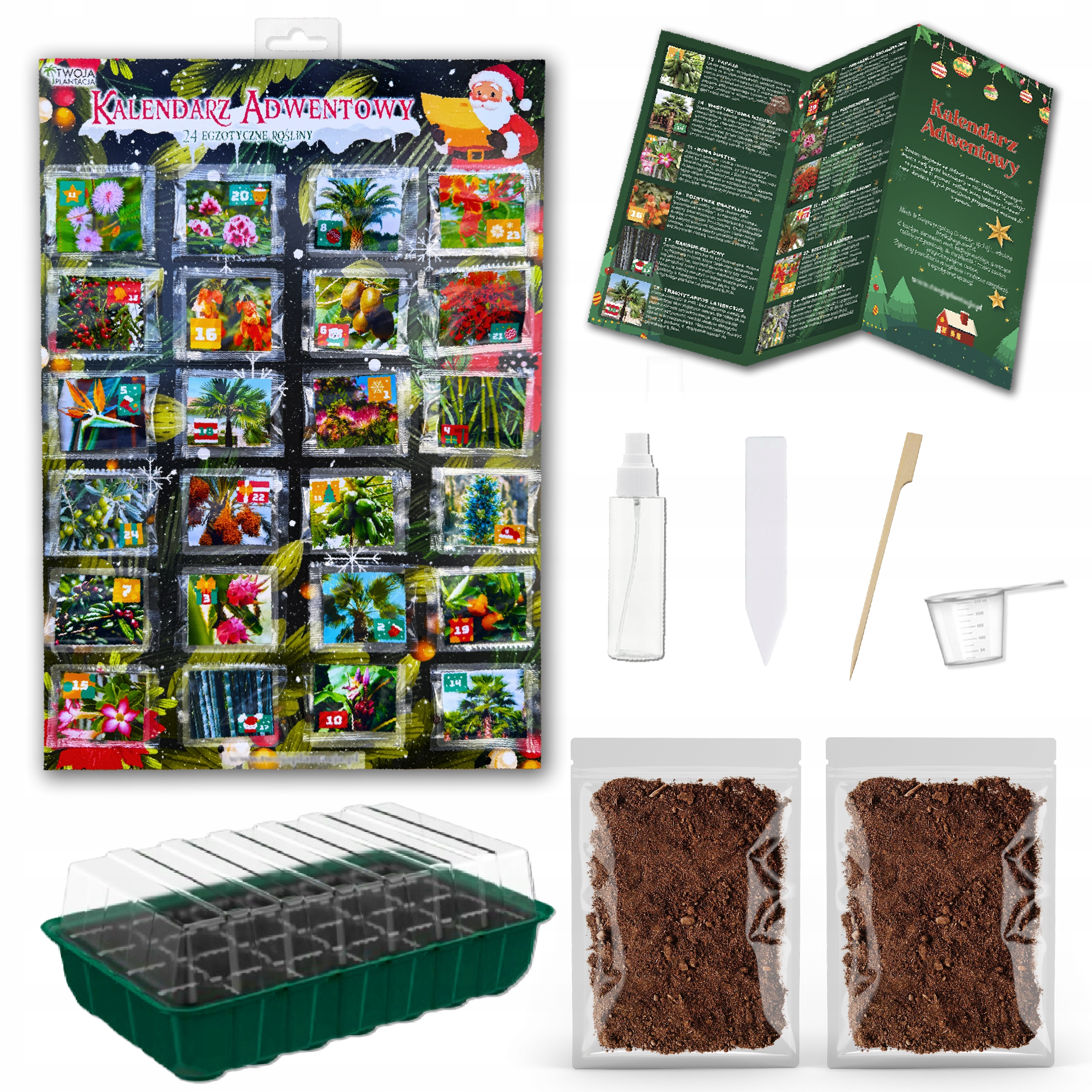 АДВЕНТСЬКИЙ КАЛЕНДАР ЕКЗОТИЧНИЙ НАБІР З 24 РОСЛИН ДЛЯ ВИРОЩУВАННЯ РІЗДВЯНОГО ПОДАРУНКУ