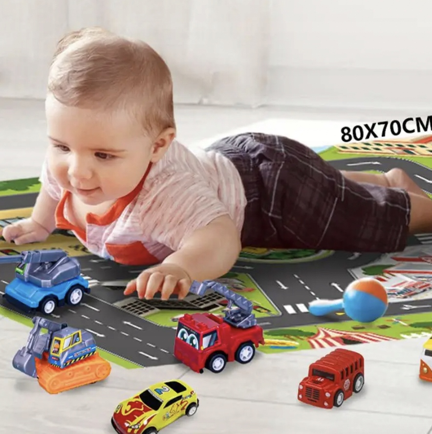 - ВКЛЮЧУЄ Килимок для їзди: Додатковий килимок для катання дозволяє дитині створювати власні маршрути та сценарії. Це не тільки додатковий простір для гри, але й навчальний елемент, який розвиває координацію рухів.