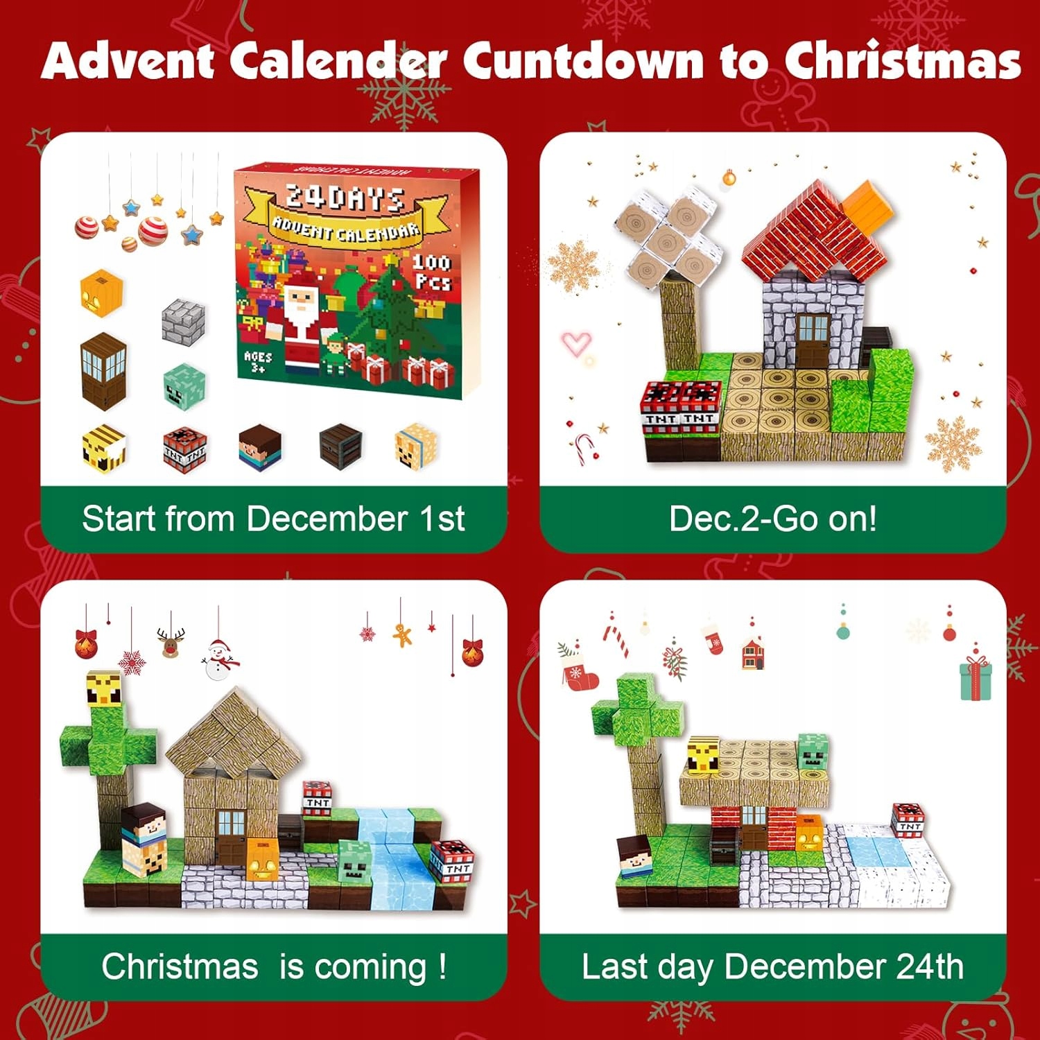 Унікальний дизайн календаря Advent на Різдво - цей продукт поєднує класичний календар пригод з магнітними блоками. Календар містить 24 невеликі коробки, кожен з них слід відкривати щодня, виявляючи різні магнітні структурні елементи. Переживайте радість від розпакування сюрпризів, додавання емоцій та щастя протягом усього різдвяного періоду.