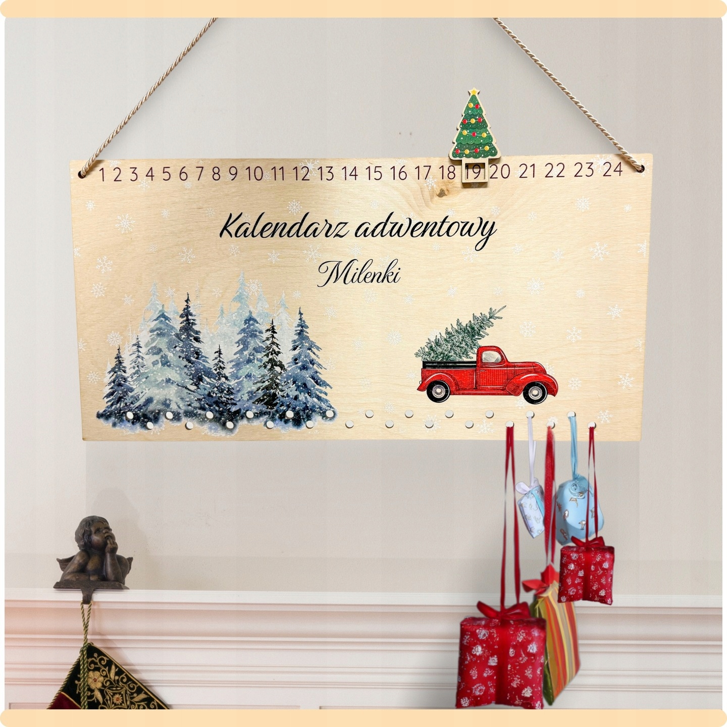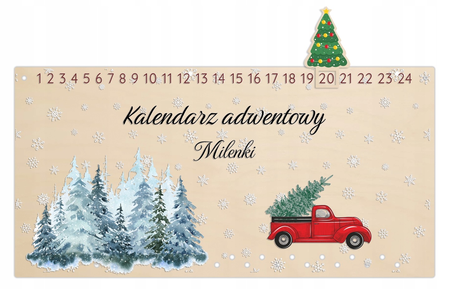 Адвент-календар ПЕРСОНАЛІЗОВАНА ДЕРЕВ’ЯНА КОЛЬОРВИТНА ПІДВІСНА ОСНОВА з назвою