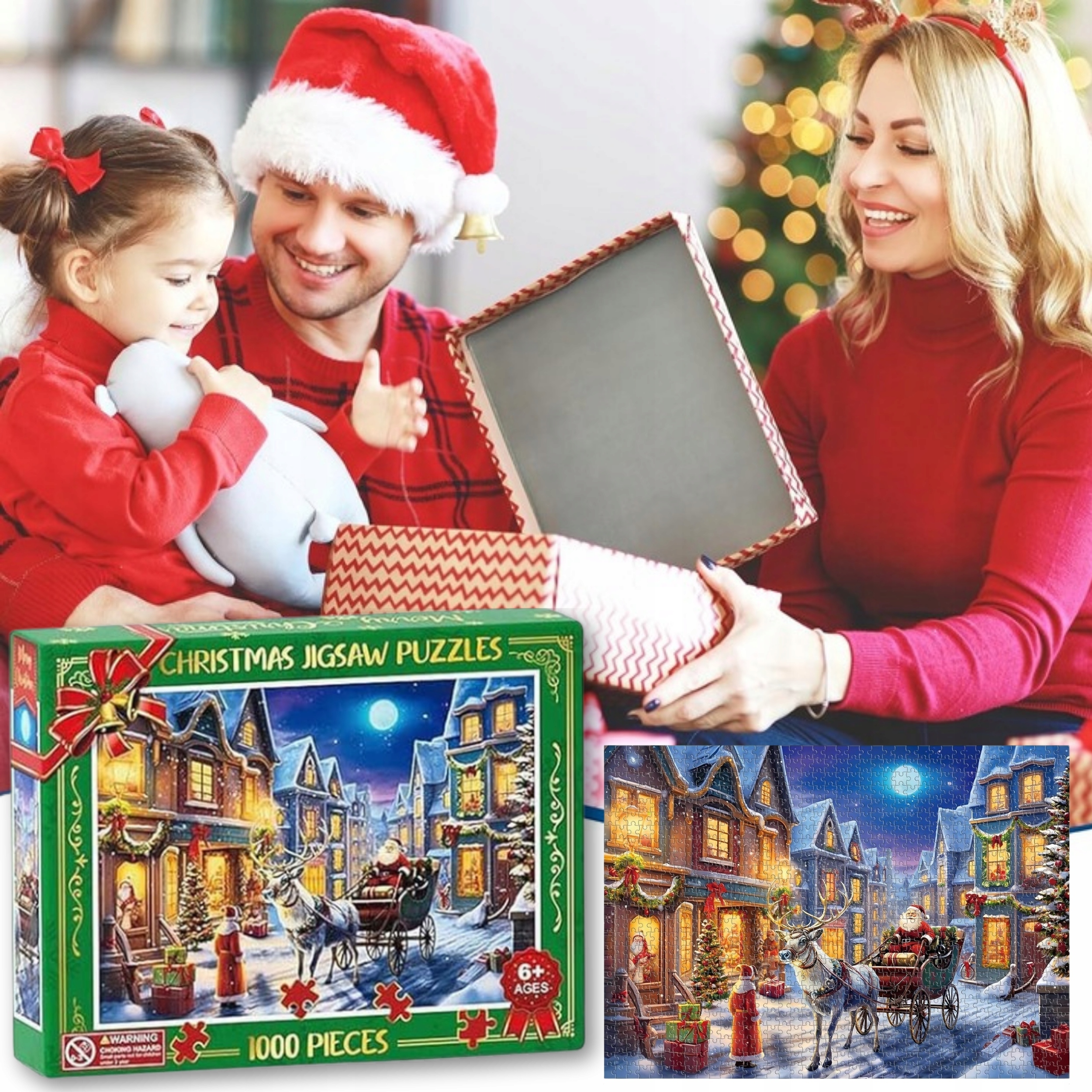 1 × набір різдвяних пазлів (1000 елементів) – частини пазла, заховані у 24 віконцях
