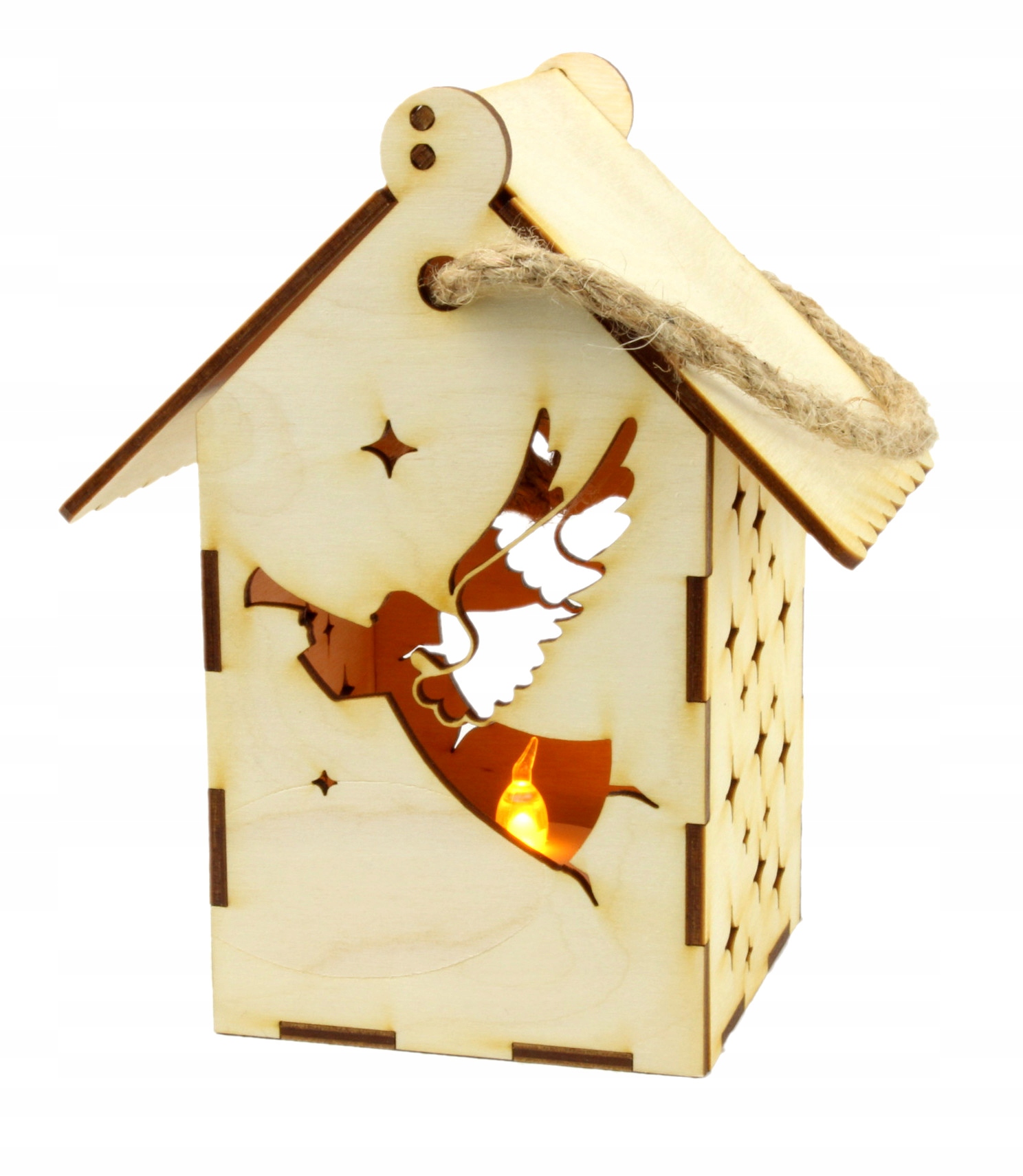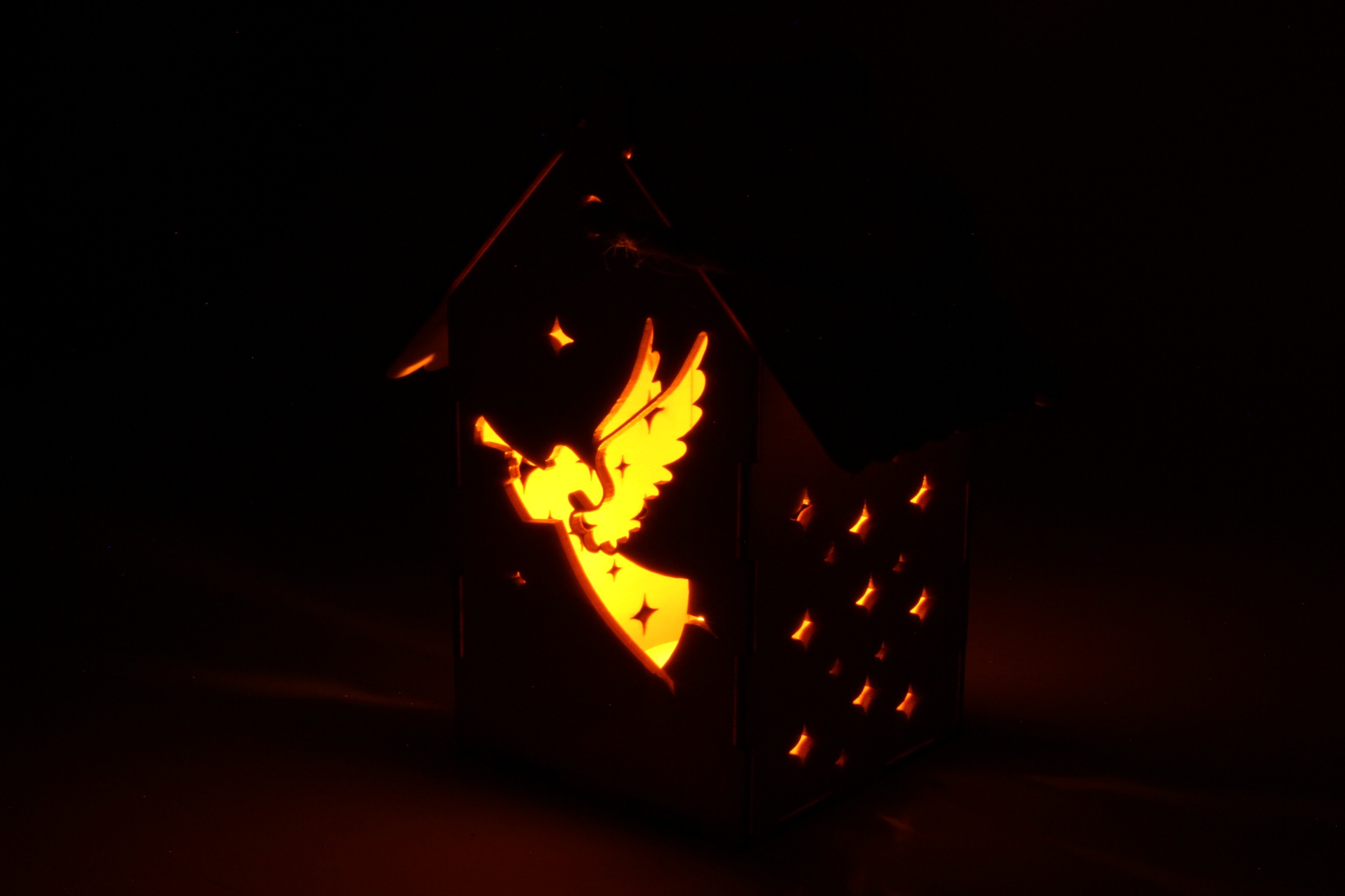 Адвент-ліхтарик з дерев'яної фанери, візерунок ангел.
