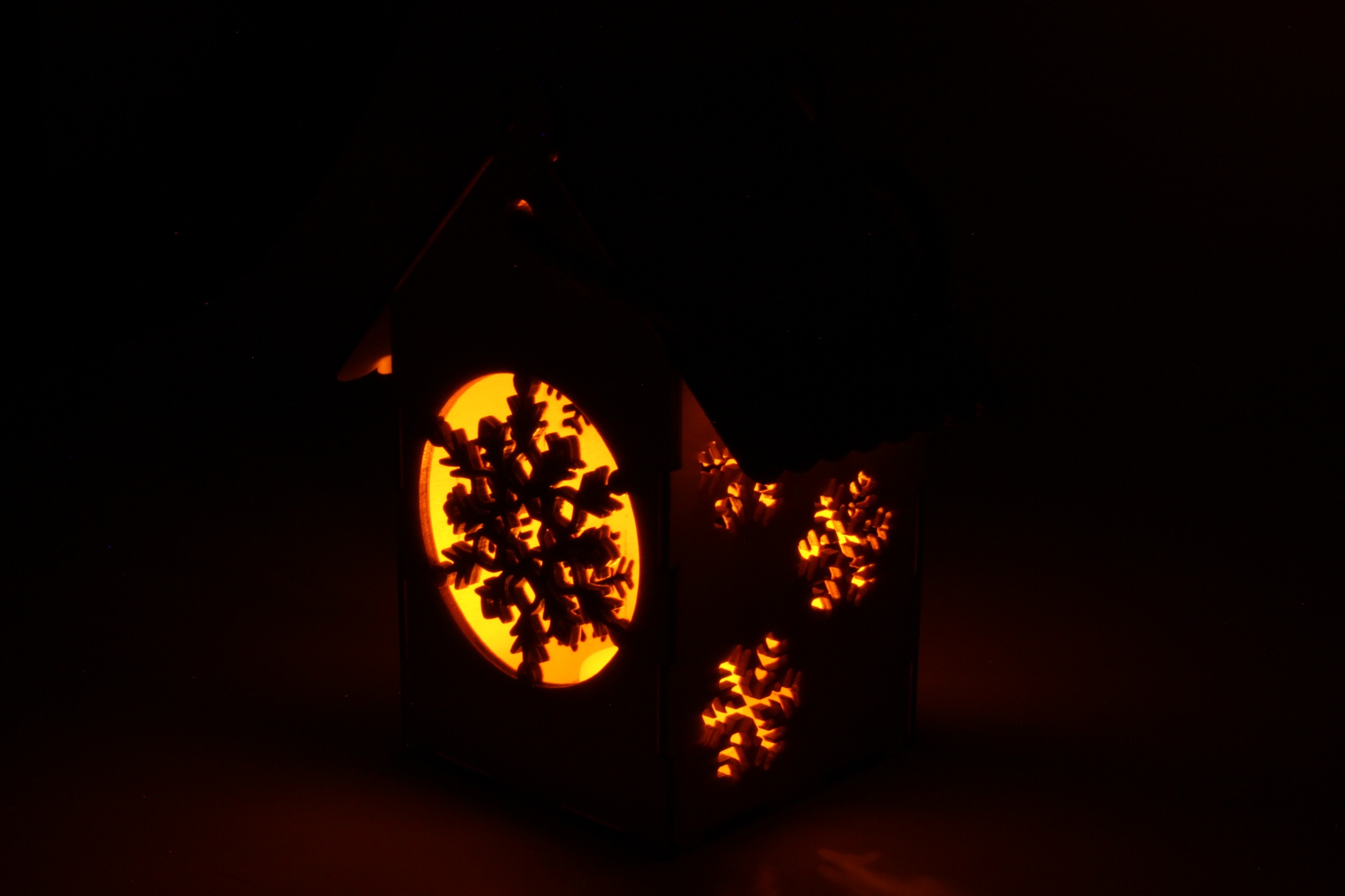 Адвент-ліхтарик з дерев'яної фанери візерунок - новорічна сніжинка.
