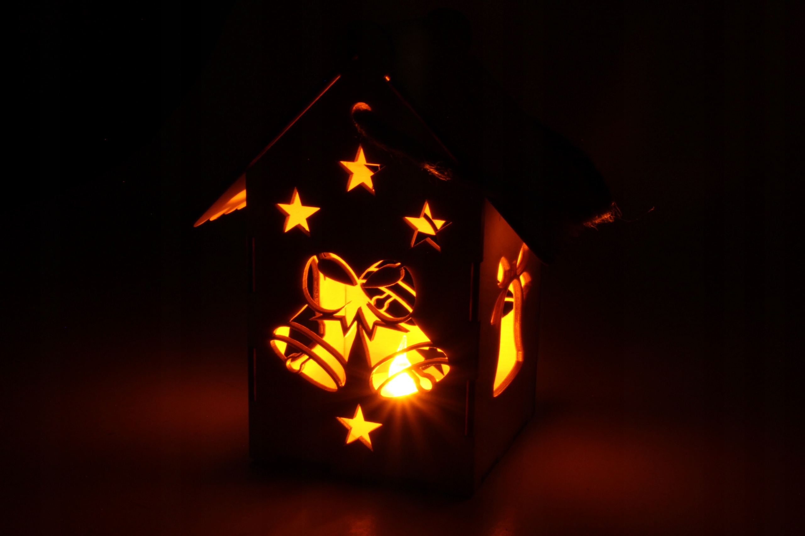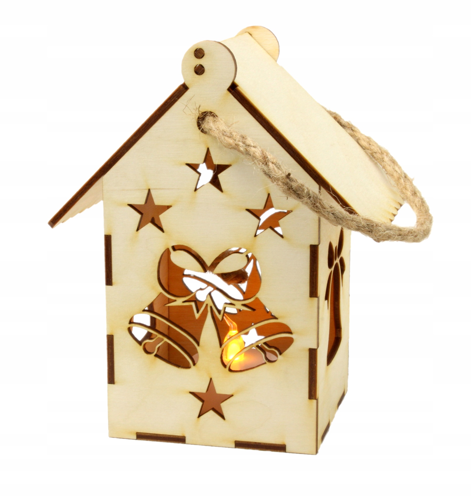 Адвентний ліхтарик з дерев'яної фанери, малюнок - Дзвіночки.