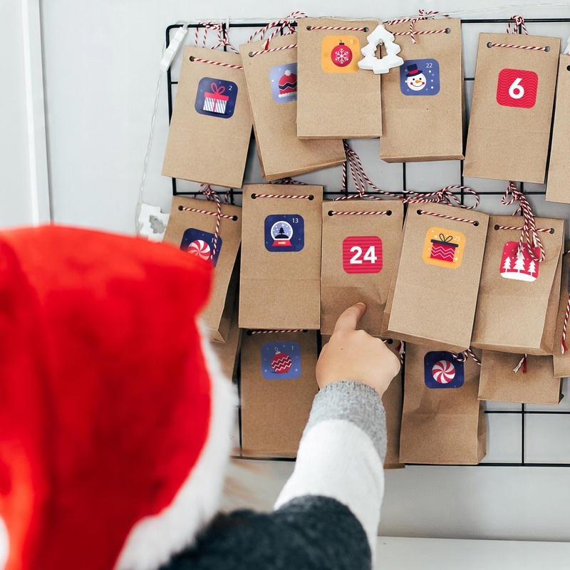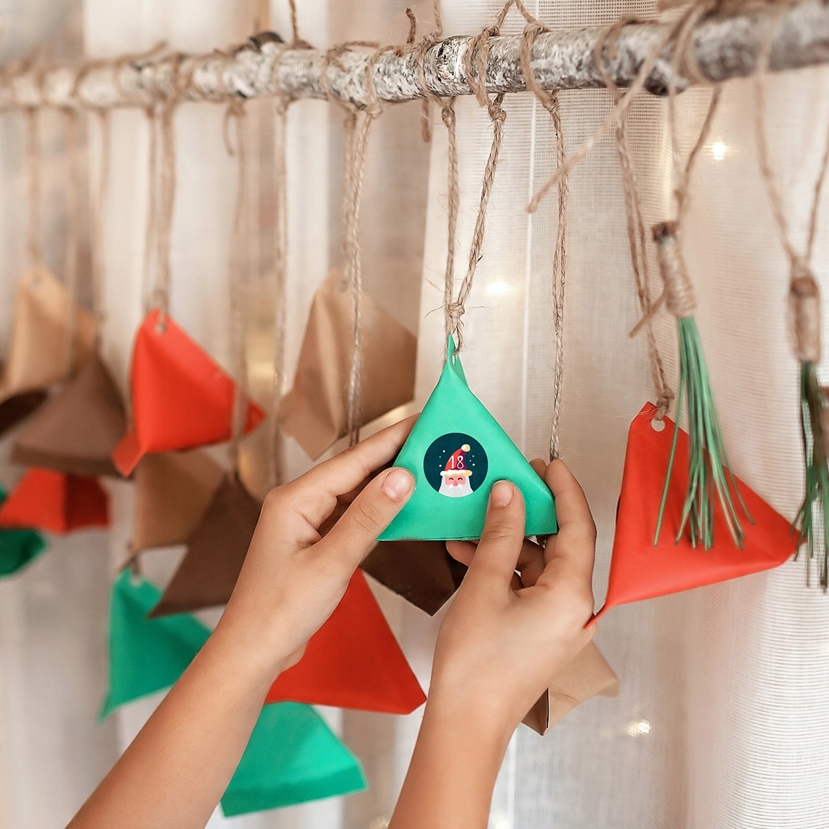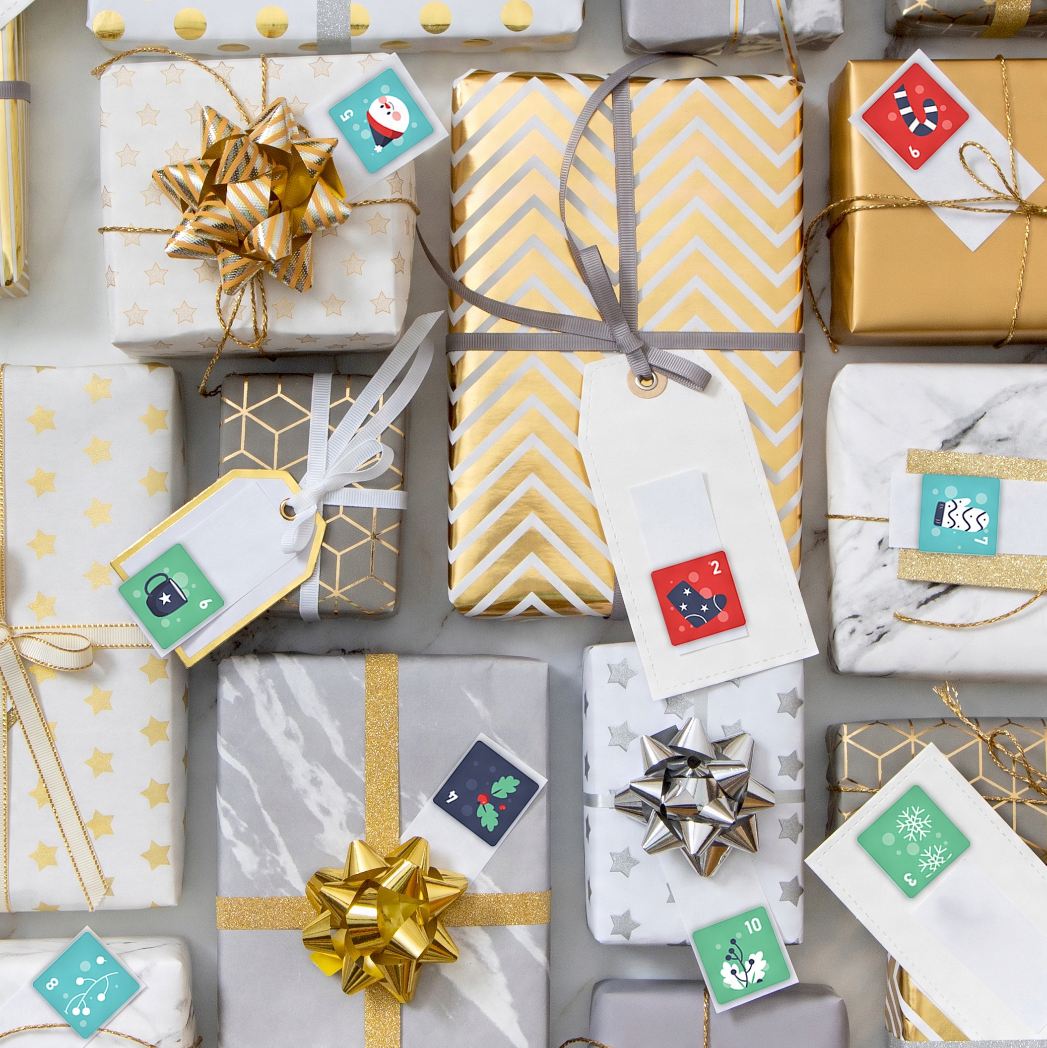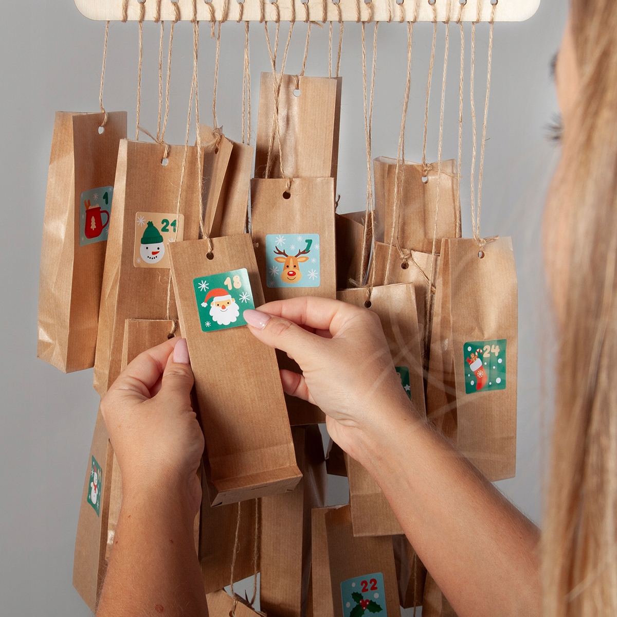 Кожна наклейка має різну різдвяну тему. На деяких наклейках є цифри, якими можна позначити наступні дні Адвенту. У набір також входять кілька наклейок із різдвяним мотивом, які можна використовувати для календаря або як прикраси для подарунків чи різдвяних листівок. Різні візерунки та формати наклейок на вибір. Квадратні наклейки розміром 3,5 см х 3,5 см і круглі наклейки діаметром 3,5 см.