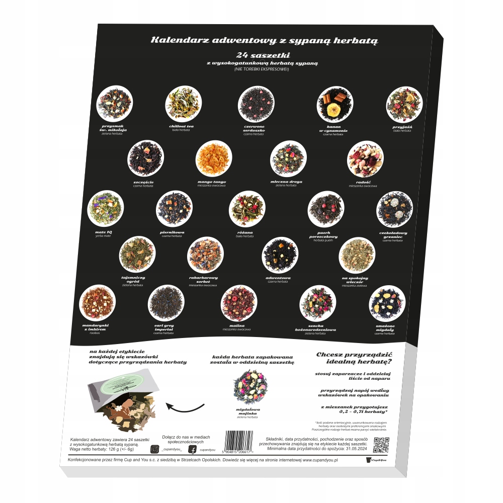 - Кожен чай упакований в окремий пакетик із детальним описом та інструкціями щодо заварювання