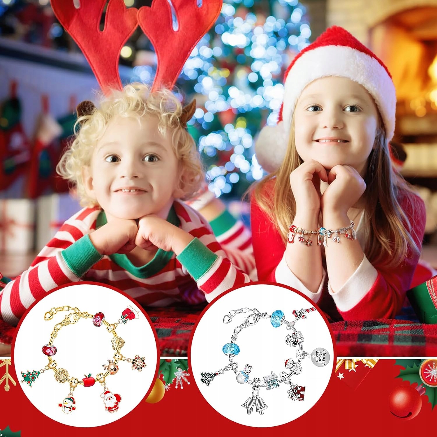 Detachable bracelets allow you to easily remove the decorations and change them to create different bracelets. Подаруйте своїм дітям набір ювелірних виробів і відраховуйте 24 дні до Різдва!