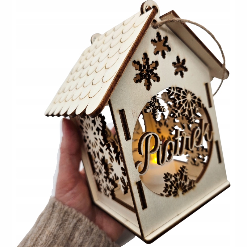 Adwentowy drewniany Lampion na roraty personalizowany IMIĘ świeczka LED