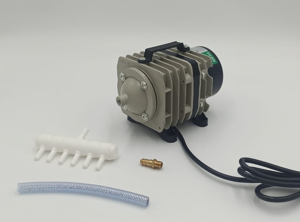 5️⃣Електромагнітний насос має один повітряний вихід, який можна легко розділити на кілька повітряних потоків за допомогою розгалужувача та шлангів, підключених до дифузорів або повітряних каменів .