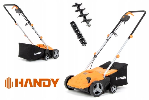 Електричний скарифікатор Handy WNW 1500 оснащений вертикальними ножами які роблять зрізи на поверхні газону, стимулюючи його швидше ріст. Після заміни котка він може працювати як аератор, очищаючи газон спеціальними пружинами. Глибину аерації газону можна вільно регулювати від -12 до 4 міліметрів. Електричний скарифікатор Lider WNW 1400 оснащений 30-літровим кошиком для матеріалу, який дозволяє збирати листя та бур'яни, що лежать у траві. Робоча зона пристрою становить 32 сантиметри в ширину. Двигун потужністю 1400 Вт працює від мережі. Електричний верстат Lider WNW 1400 має запобіжний вимикач і захист від теплового перевантаження, що значно знижує ризик поломки або нещасного випадку. Завдяки відносно невеликій вазі та чотирьом міцним колесам маневрувати пристроєм дуже легко та зручно у використанні. Скарифікатор також має легкодоступне регулювання робочої висоти.