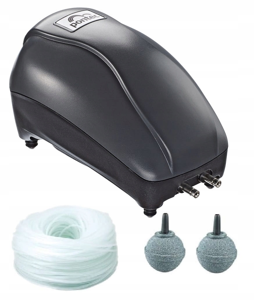 В набір входить: аераційний насос, два шланги 4/6 мм по 5 м кожен, 2 повітряні камені, кабель 1,5 м з вилкою з захисним контактом.