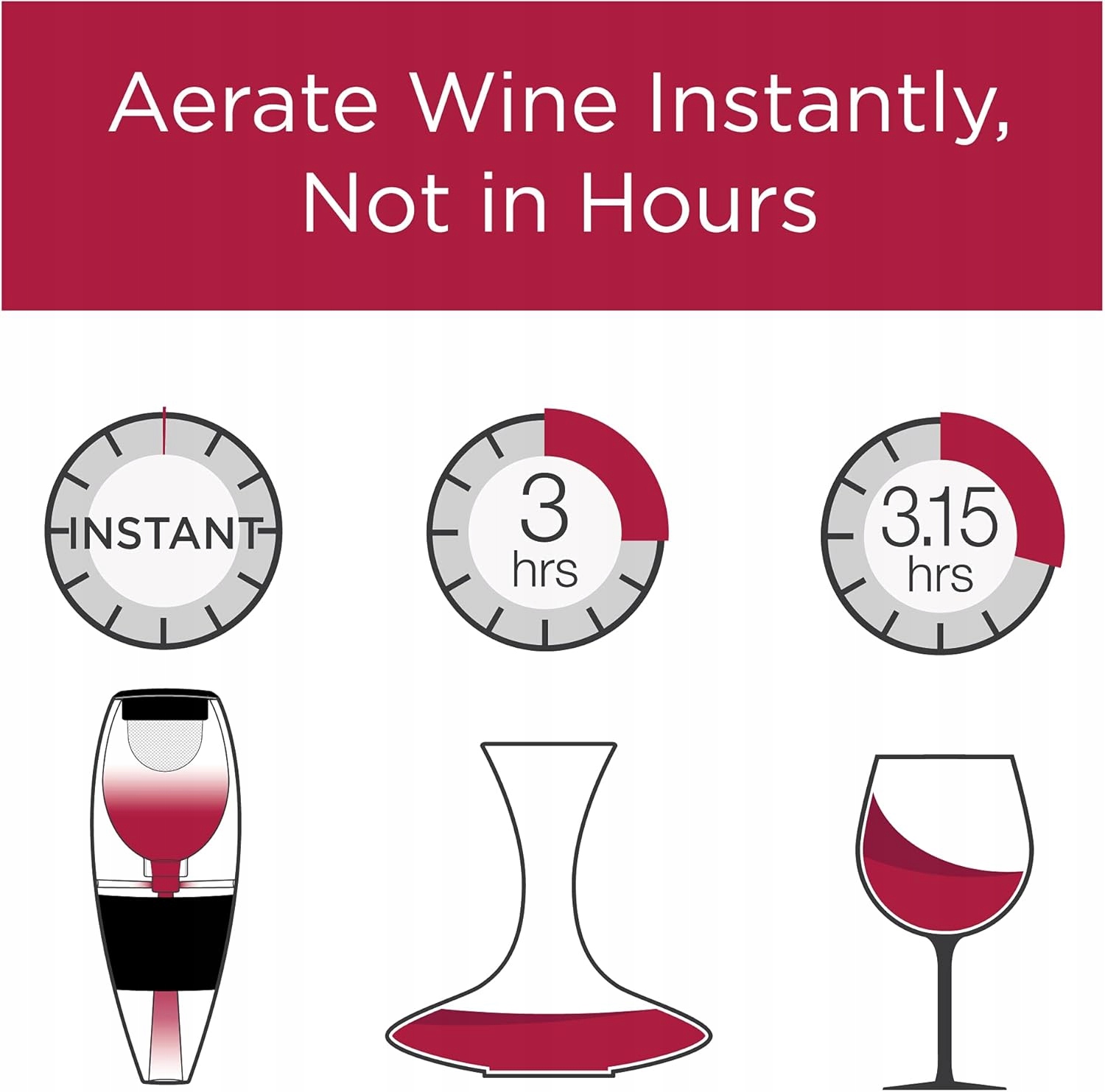ШВИДКО: Швидко та зручно аеруйте вино з пляшки чи склянки.