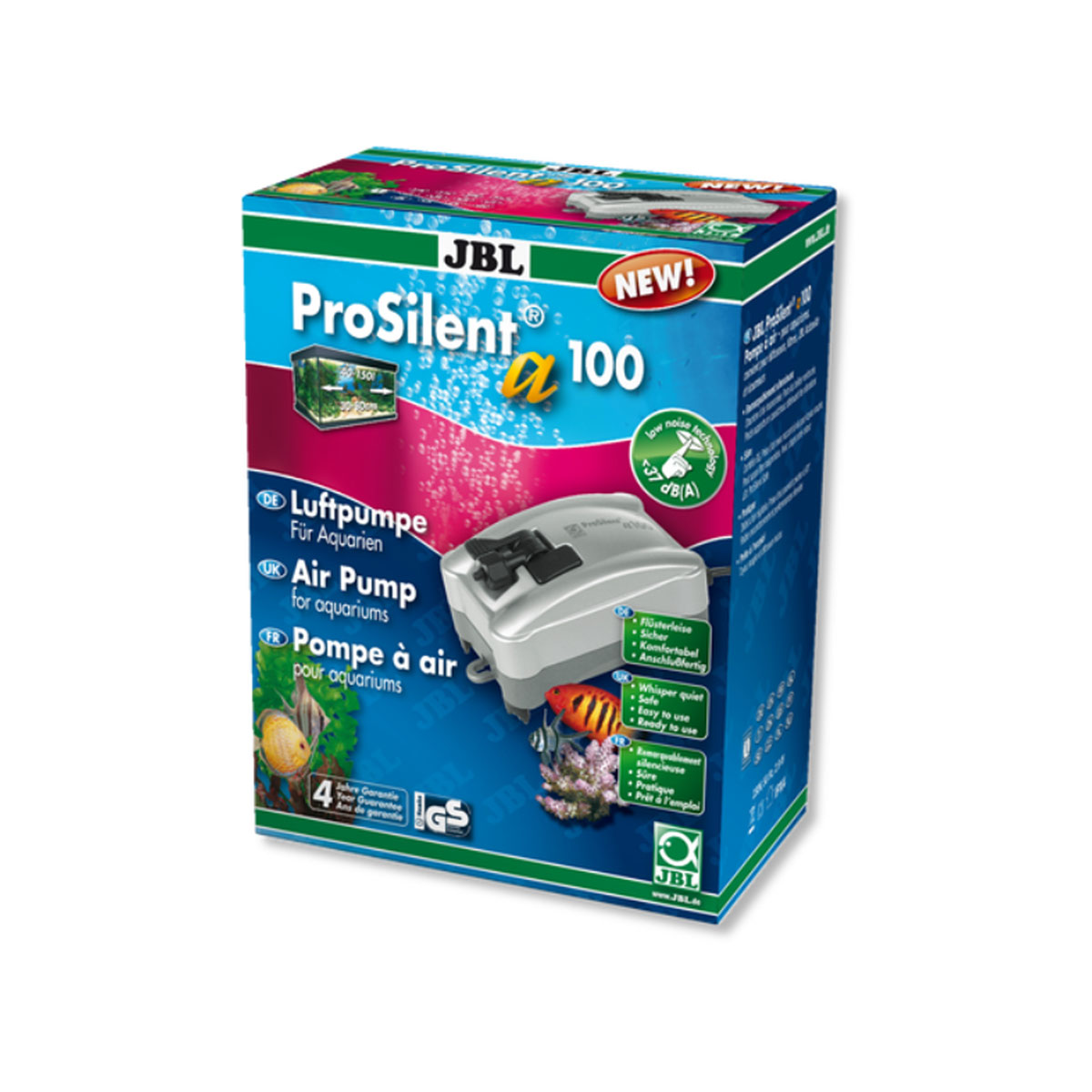 Повітряний насос JBL ProSilent сертифікований TÜV. Завдяки потужності повітряного потоку 100 л/год і споживаній електроенергії лише 2,9 Вт він є високоефективним і забезпечує безпеку завдяки повітряному з’єднанню зі шланговим з’єднувачем. Повітряна камера з акустичною ізоляцією, посилена стінка корпусу та віброгасильні силіконові ніжки забезпечують тиху роботу. Прилад має зворотний клапан.