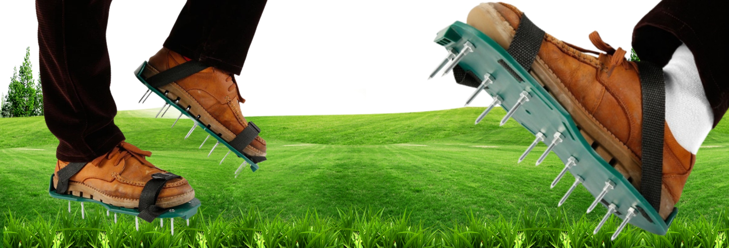 Щоб покращити стан вашого газону, просто одягніть сандаловий аератор на взуття та відрегулюйте довжини ремінців, а потім вирушайте на прогулянку по своєму газону.