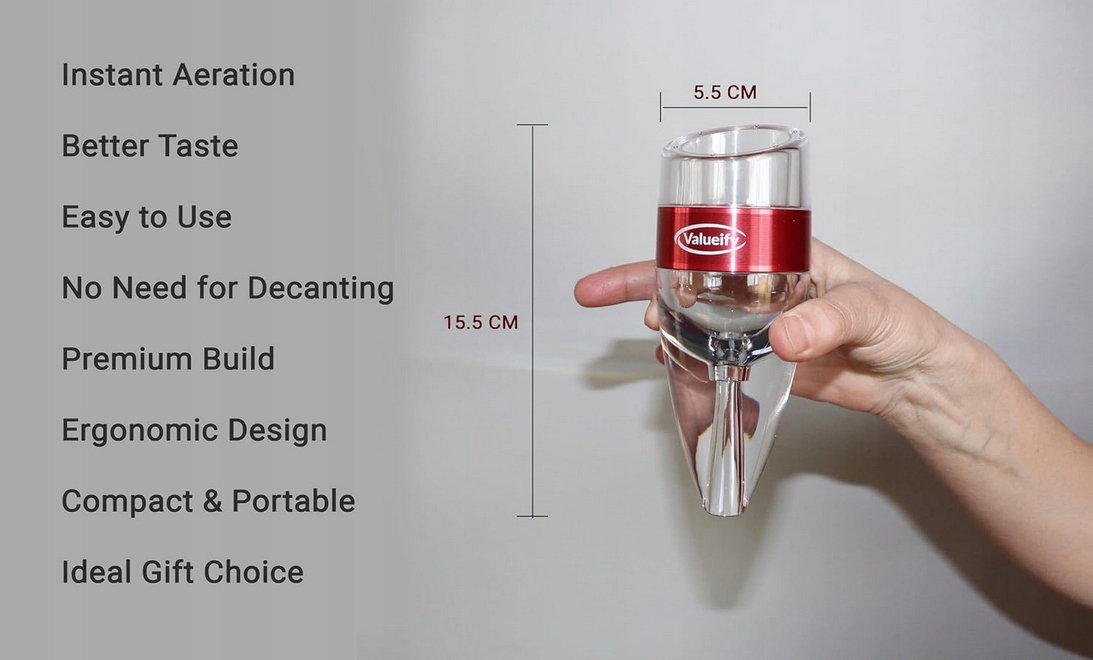 - ✅ Миттєве покращення смаку вина – покращте враження від вина за допомогою портативного винного повітрювача Valueify, розробленого для миттєвого покращення смаку та аромату для отримання м’якшого та вишуканішого смаку.