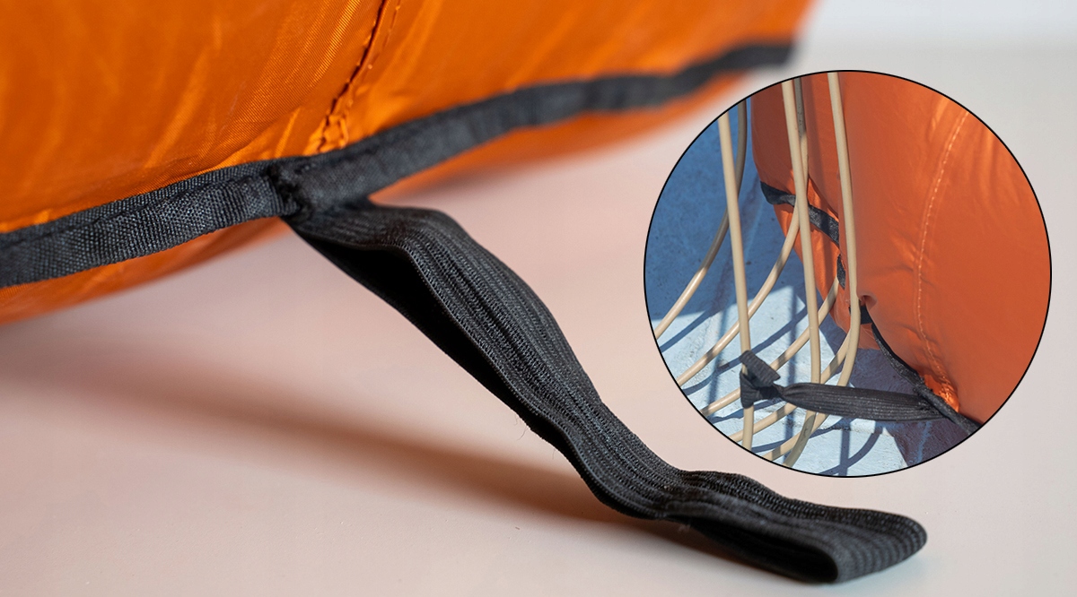 ➡ Матрац оснащений кріпленням, що допомагає захистити його від поривів вітру. Він може бути прикріплений, наприклад, до таблиці або прикріплений штифтом до землі (без підборів у наборі).