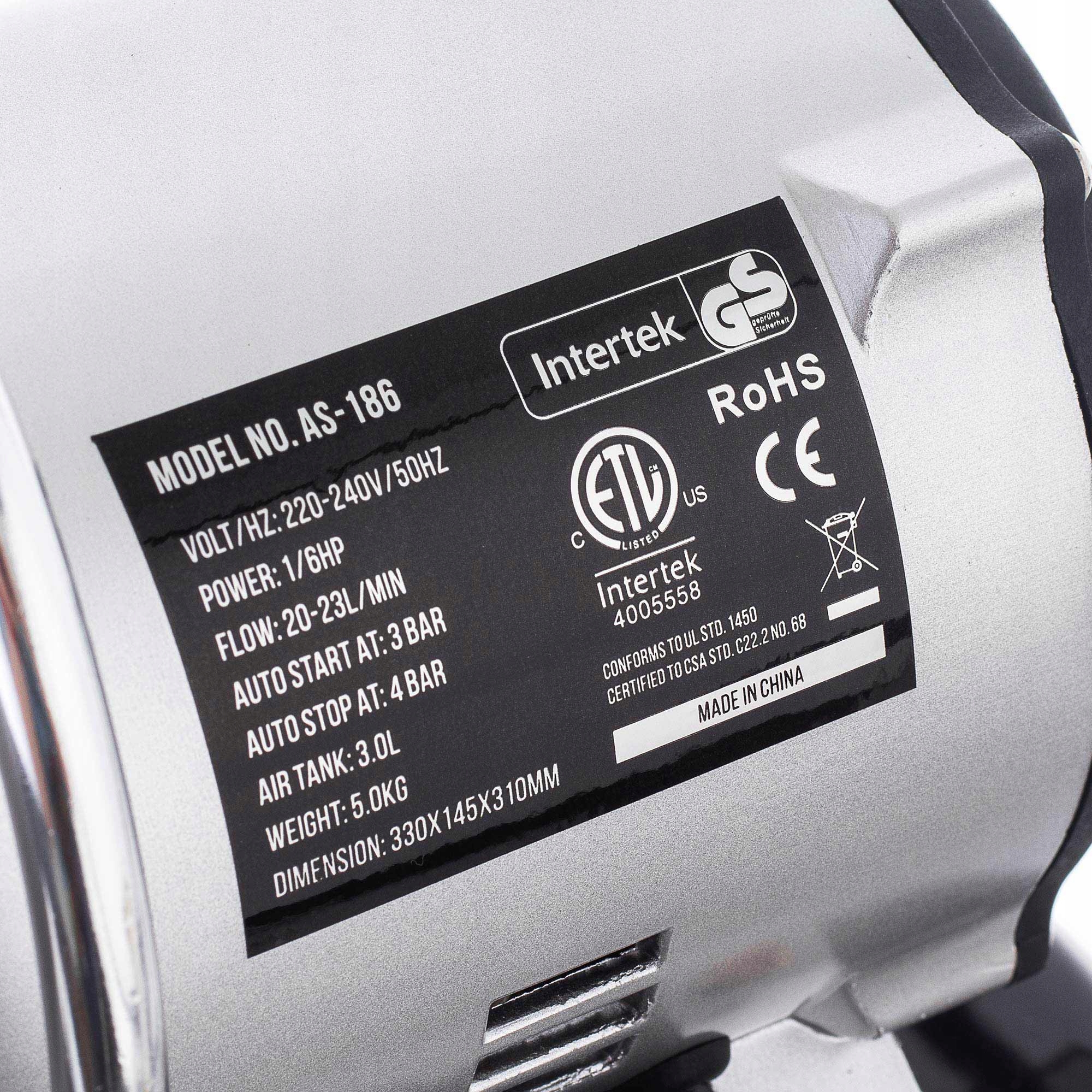 Компресор AS-186 має стандартну з’єднувальну різьбу для шланга 1/8 дюйма – приблизно 9,5 мм, виміряну ззовні. Це дозволяє під’єднувати більшість шлангів і аксесуарів, доступних на польському ринку.