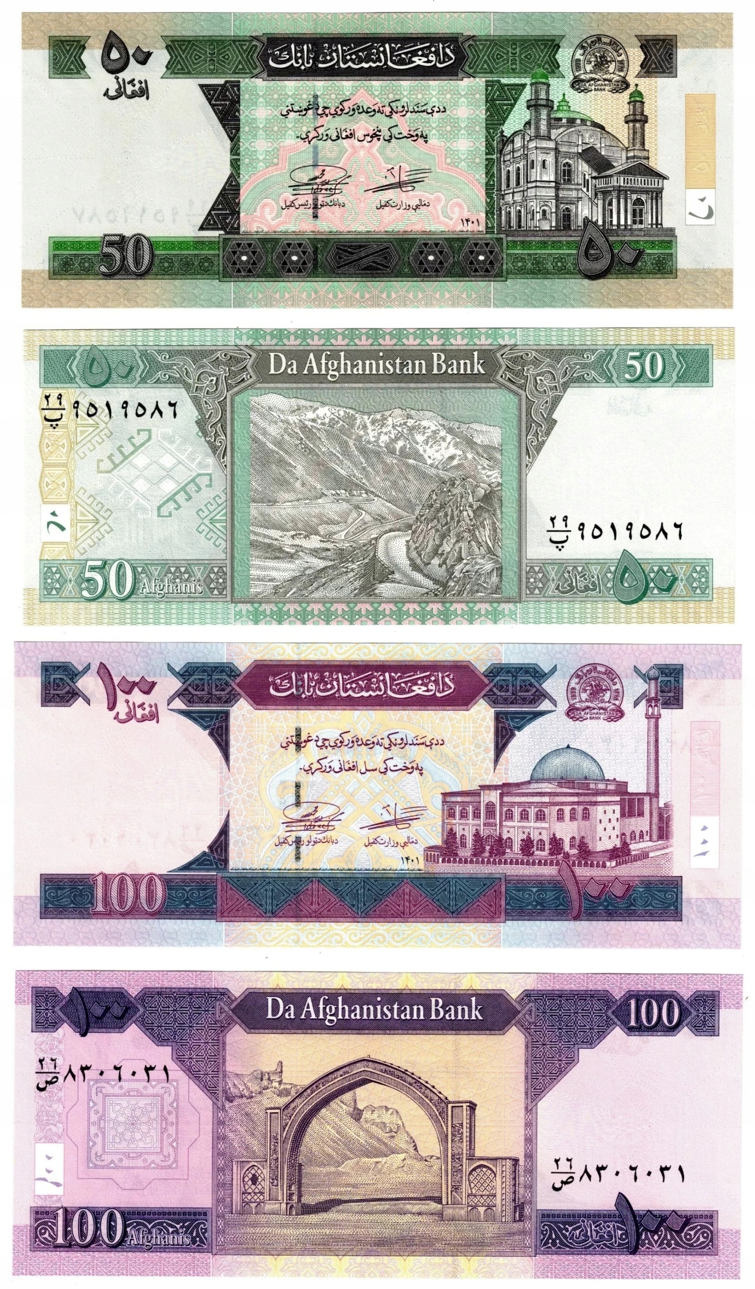 AFGANISTAN ZESTAW 50 + 100 Afghanis 1401 2022 P-69h + P-75f UNC