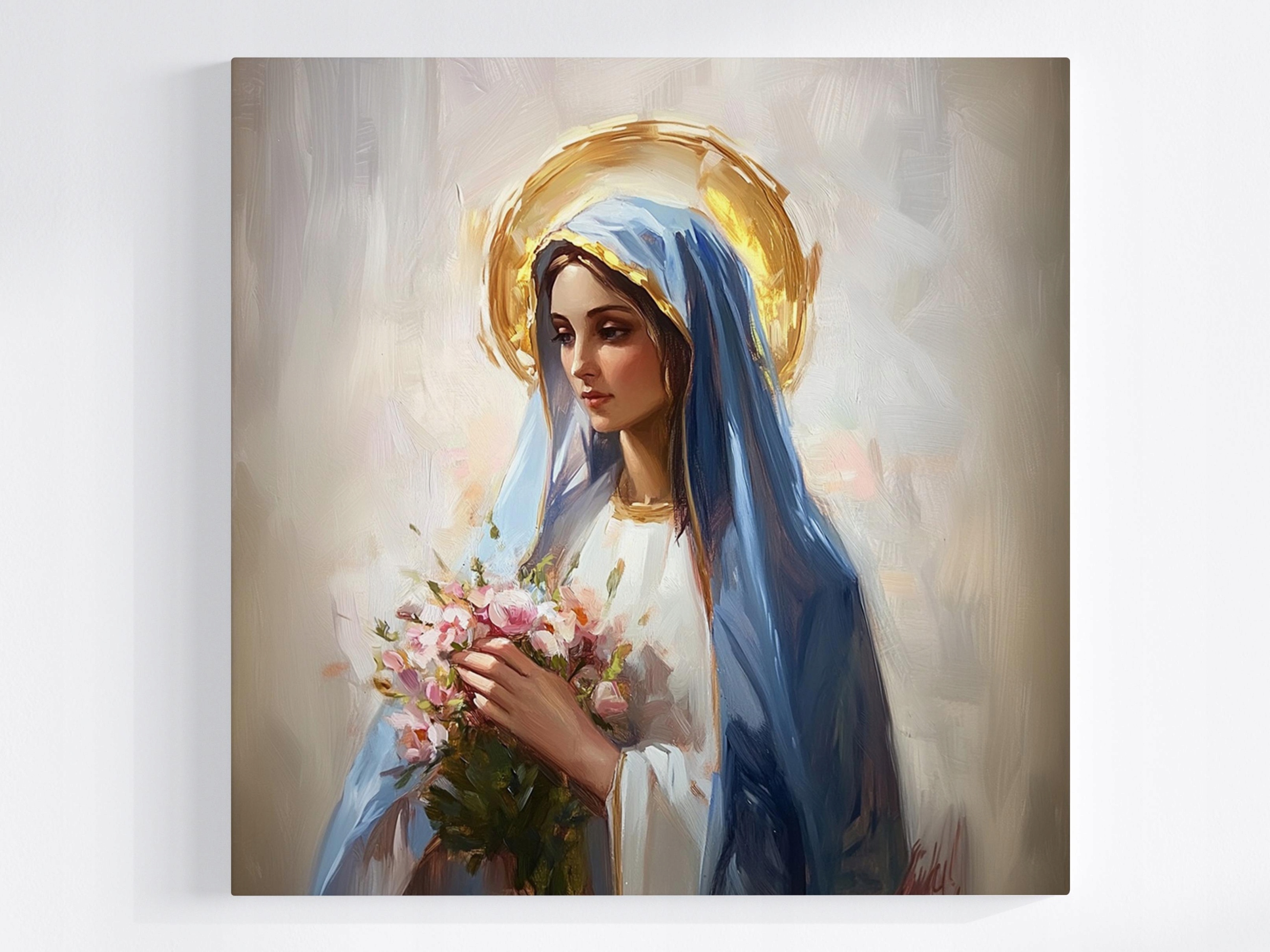 АФІША БОГОРОДИЦЯ МАРІЯ СВЯТА З КВІТАМИ 40х40