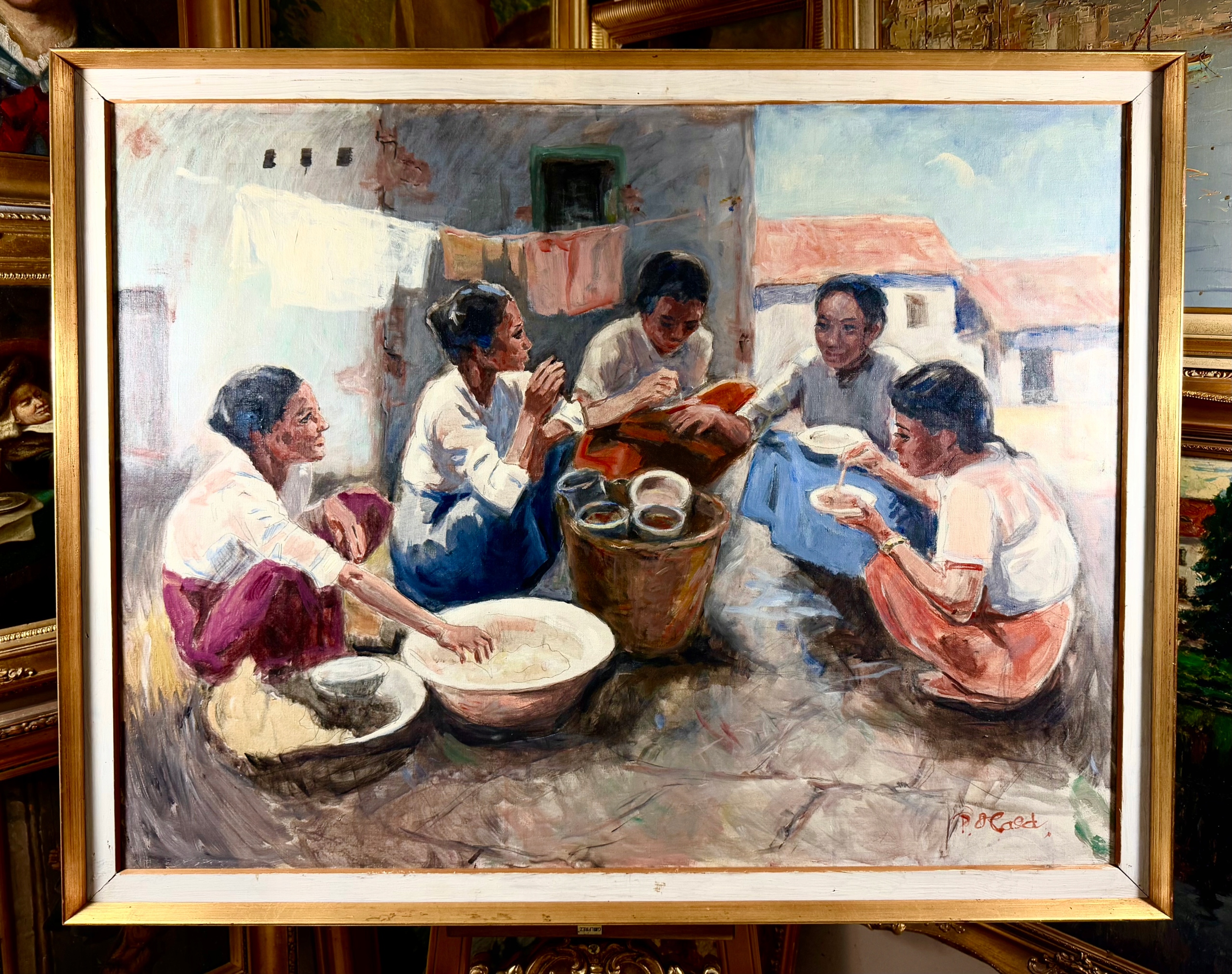 АФРИКА - ЖІНКИ ЗА ТРАПЕЗОЮ - УНІКАЛЬНА КРАСИВА ВЕЛИКА СТАРА КАРТИНА