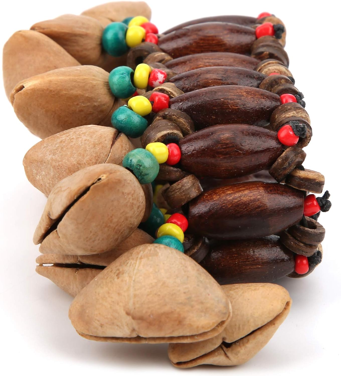 Гарний і міцний, цей барабанний браслет виготовлений вишуканою майстерністю, довговічний, красивий і щедрий. Чистий звук Виготовлений із матеріалу шкаралупи волоського горіха, який створює чіткий і красивий звук дзвонів і дзвонів при зіткненні один з одним. Спеціальні аксесуари Цей браслет є спеціальним аксесуаром для гри на африканських барабанах і вуличної перкусії. Підходить для Цей браслет-дзвіночок виготовлений з прозорої сухої шкаралупи волоського горіха. Один розмір для Dejembe Conga та інших барабанів. Ідеальний подарунок Цей браслет-дзвіночок може стати подарунком любителям музики, друзям, родичам або коханим.