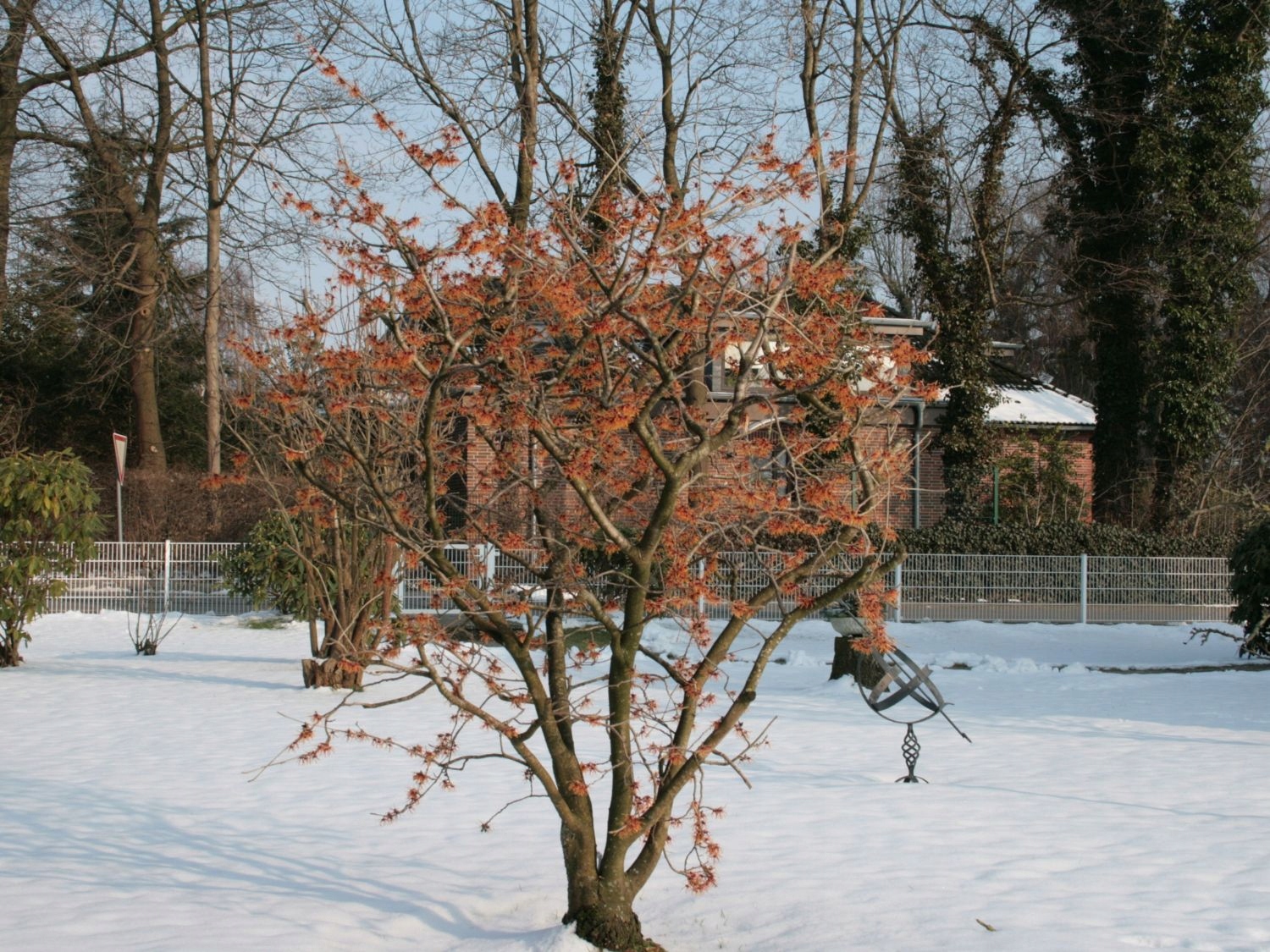 Унікальна рослина, яка цвіте взимку. У лютому-березні з'являються оригінальні, ніжні квіти з безліччю стрічкоподібних пелюсток і оранжевого кольору. Чагарник висотою до 3-4 м.