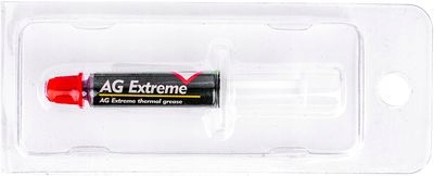 Термопаста AG Extreme 1г. Це забезпечує відмінну теплопровідність між такими компонентами, як центральний процесор, графічний процесор, світлодіоди, пластини з ребрами розсіювання тепла та вентилятор. Спосіб нанесення забезпечує простоту використання. Пасту можна наносити на різні компоненти комп'ютерної техніки. Оскільки це діелектрик, він не проводить електрику, що забезпечує захист від різних небезпек електричного струму. Відповідає вимогам стандартів SGS, MSDS, ROHS щодо аспектів безпеки використання. Високий вміст теплопровідних інгредієнтів робить пасту дуже густою.