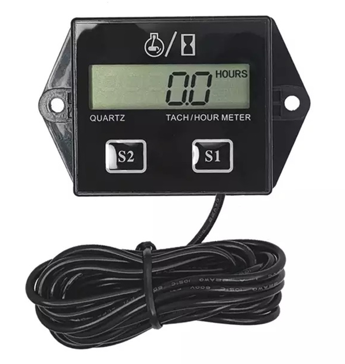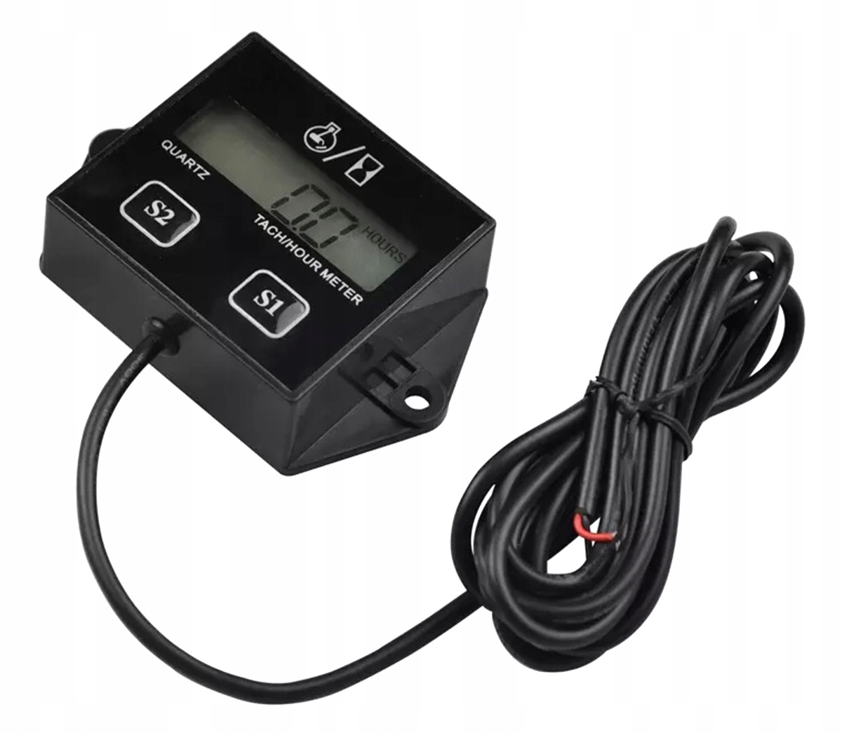 Електронний лічильник годин (час роботи бензинового двигуна). Працює з усіма двигунами 2T і 4T з іскровим запалюванням. Він буде ідеальним не тільки в автомобілях, а й у всіх транспортних засобах і пристроях, що працюють на бензиновому двигуні, таких як мотоцикли, агрегати та газонокосарки. Це значно полегшує розрахунок робочого часу і прийняття рішення про заміну рідин, масла для свічок запалювання і регулювання клапанів. Нескладний монтаж гарантує ефективне використання навіть новачками. Досить намотати на свічку кілька обертів лічильника. Під час роботи двигуна лічильник відображає інформацію про час роботи та піктограму пісочного годинника, яка вказує на правильність вимірювань.