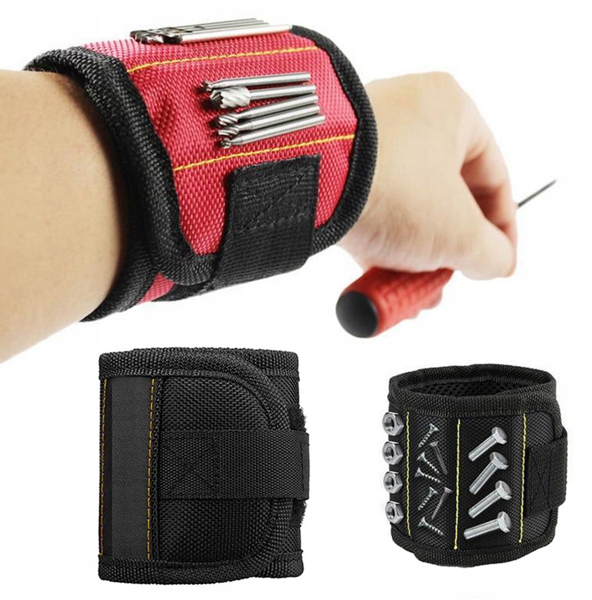 Професійний магнітний браслет з регулюванням на липучці! Наявність магнітів дозволяє зручно розміщувати на руках невеликі металеві предмети, до яких необхідний постійний доступ. Це надзвичайно зручне рішення, завдяки якому всі гвинти, гайки, біти та головки у нас завжди під рукою! Це значно прискорює всі ремонтні та сервісні роботи, оскільки нам більше не потрібно витрачати час на пошуки втрачених дрібних елементів!