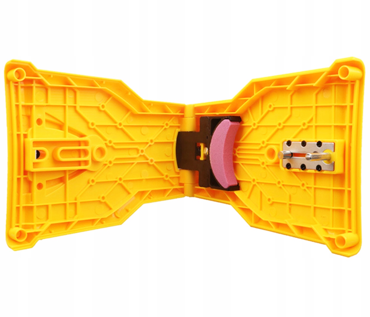 Компактний пристрій для заточування бензопил. Виготовлений з легкого і міцного пластику, що дозволяє швидко заточити ланцюг під час перерви в роботі. Точилка сумісна з більшістю ланцюгових пилок з двома отворами (тобто 14'' / 16'' / 18'' / 20''). Інструмент має дві ручки для кріплення, одна з яких регульована, що дозволяє адаптувати його до різних типів ланцюгів. У точилці використовуються спеціальні точильні камені (камені), доступні на окремому аукціоні (AG685A).