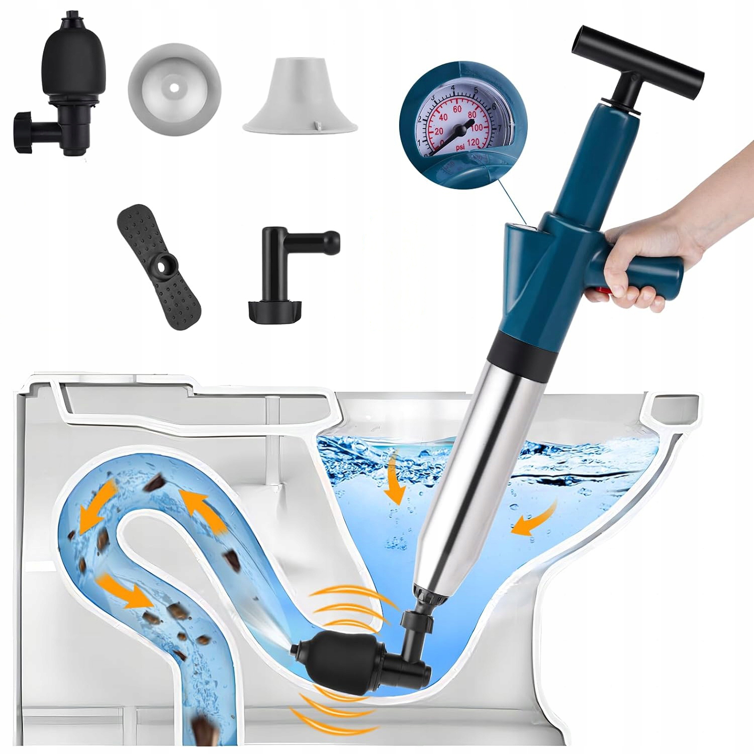 ➡ використовує потужність стисненого повітря високого тиску (до 8 барів) для легкого видалення заторів у трубах за кілька секунд. Обрізані туалети, підлоги, мийки, труби тощо