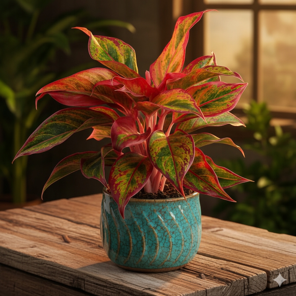 Аглаонема «Кріт» – справжня королева інтер’єрів, славиться своїм насиченим кольором листям, які ніби горять вогненно-червоним і рожевим на зеленому тлі. Це ідеальний вибір для тих, хто хоче додати екзотичний барвистий акцент до свого дому чи офісу.