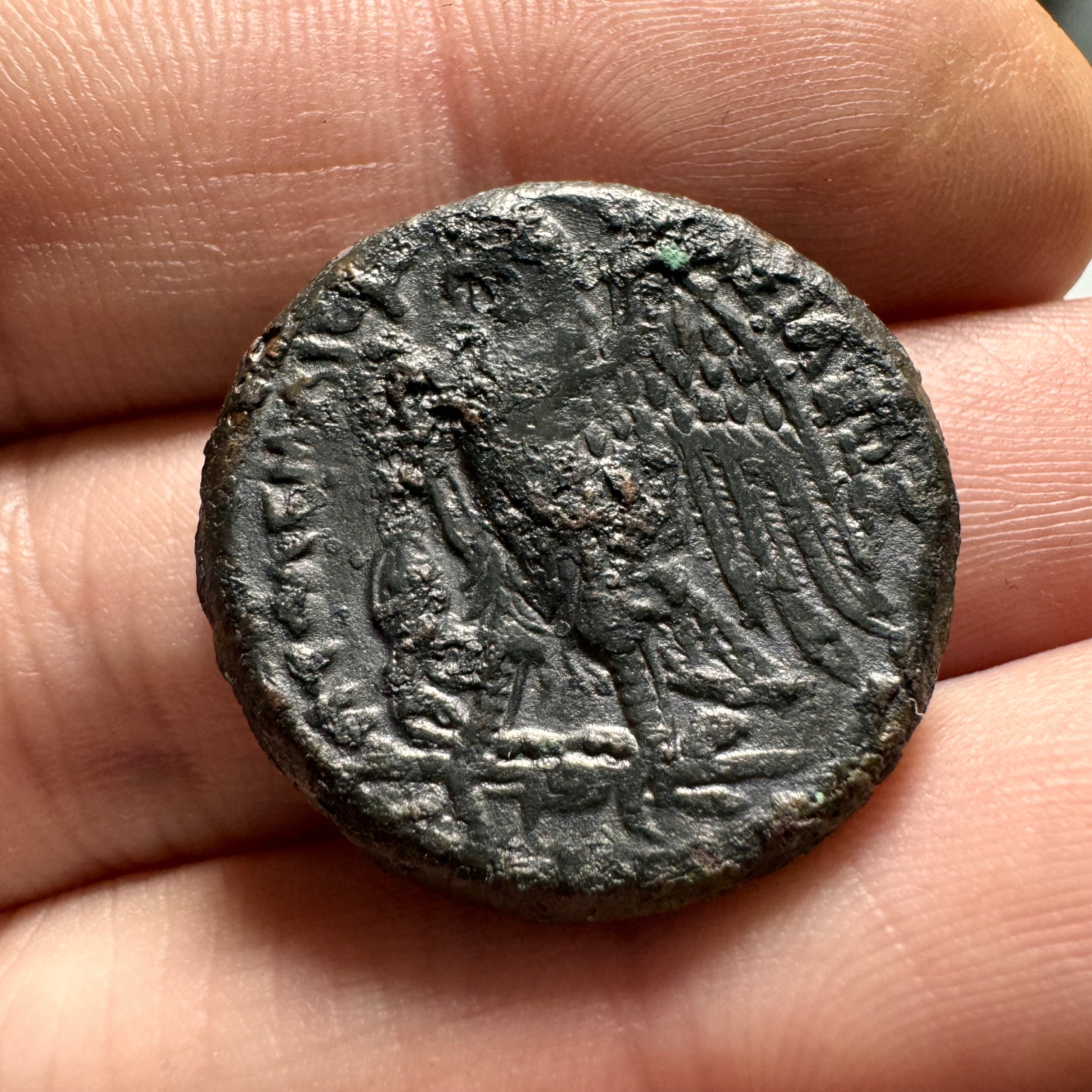 Бронза — AE Obol, викарбувана в Александрії, Єгипет, під час правління Птолемея II. p>