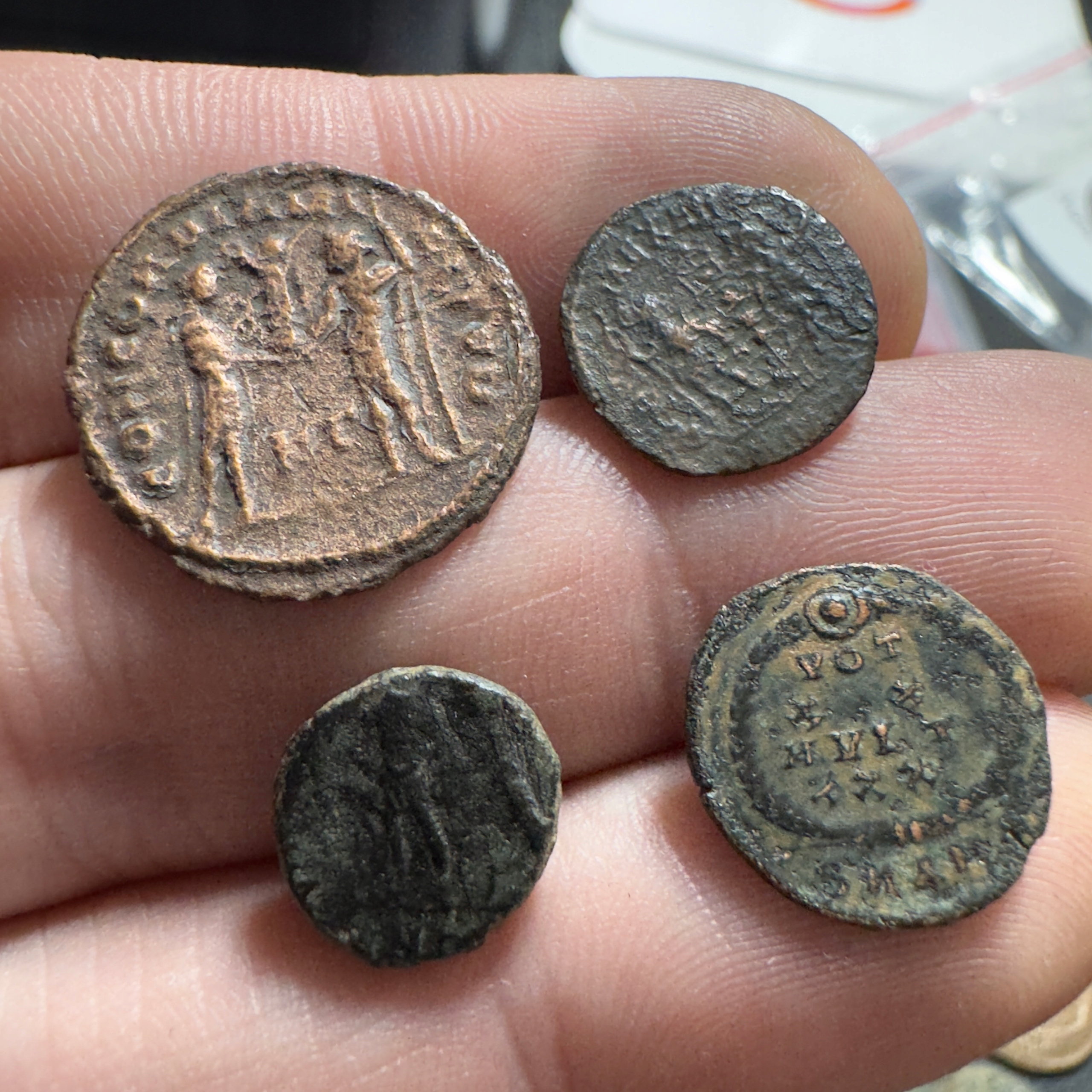 Набір із 4 римських монет для ідентифікації та можливого очищення.