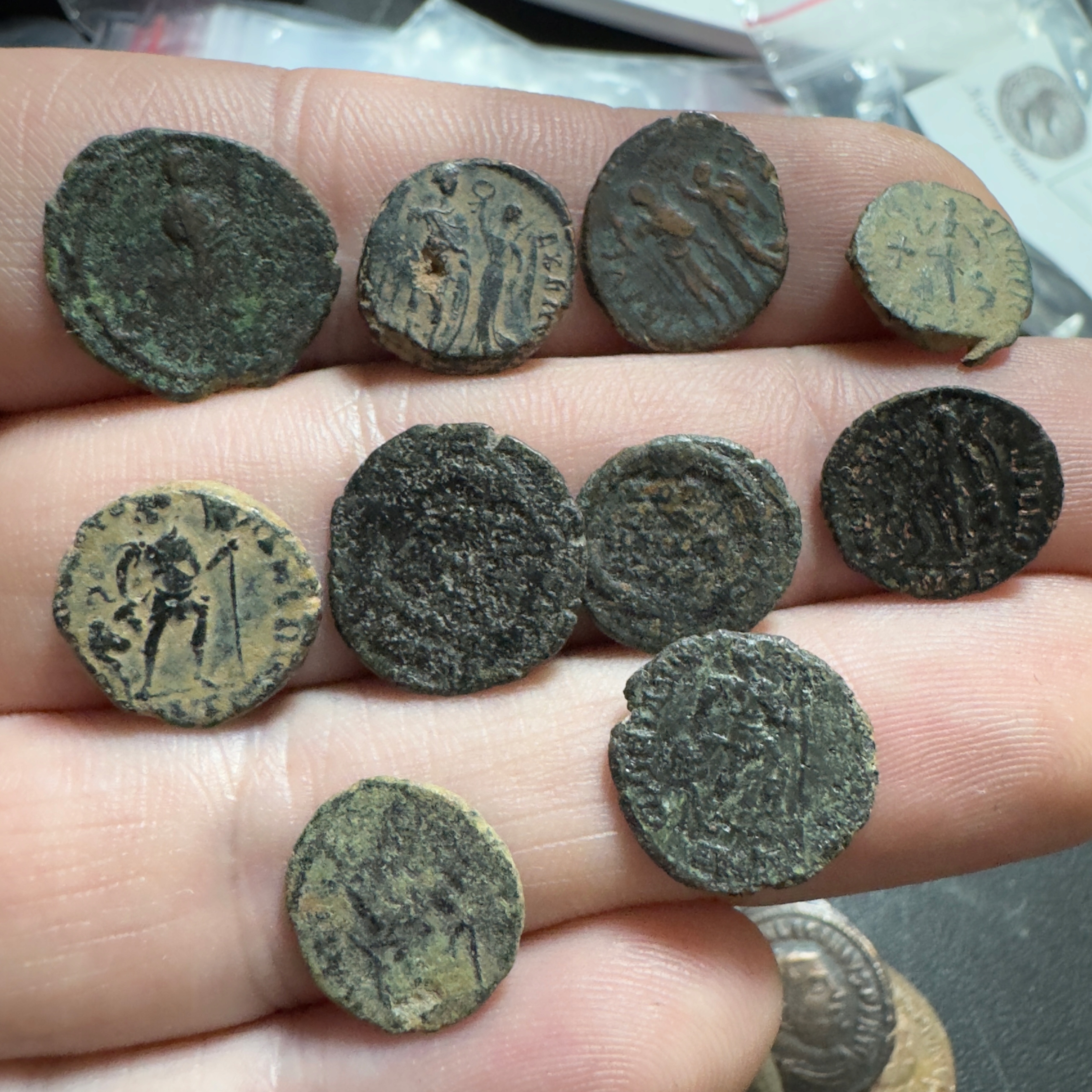 Набір із 10 римських монет для ідентифікації та можливого очищення.