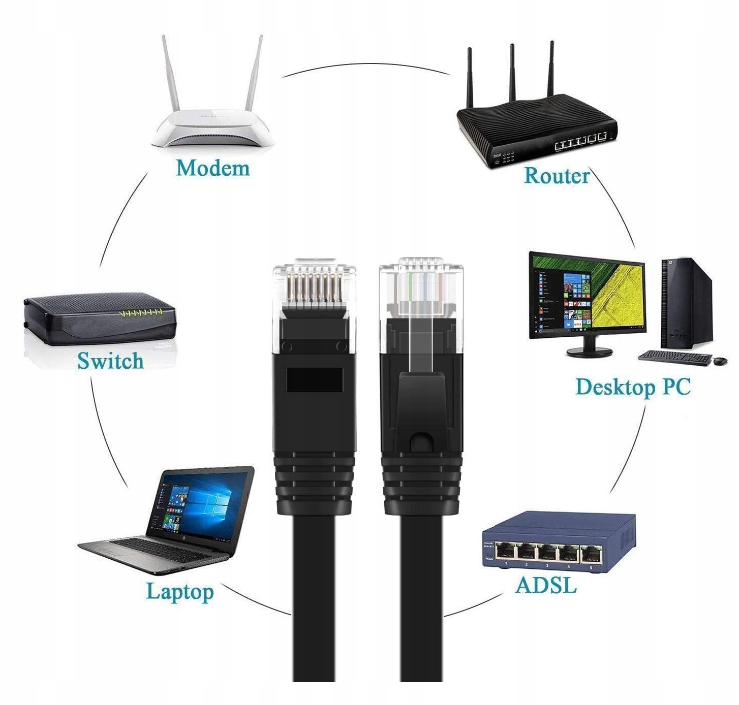 Кабель Ethernet 2x RJ45 використовується для підключення комп’ютера, ноутбука до комутатора, маршрутизатора, абонента розетка, концентратор, точка доступу, модем, у мережах LAN, Інтернет, Ethernet тощо.