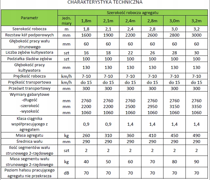 Agregat uprawowy 1,8m. 2,1m. 2,4m 2,8m. 3,0m.