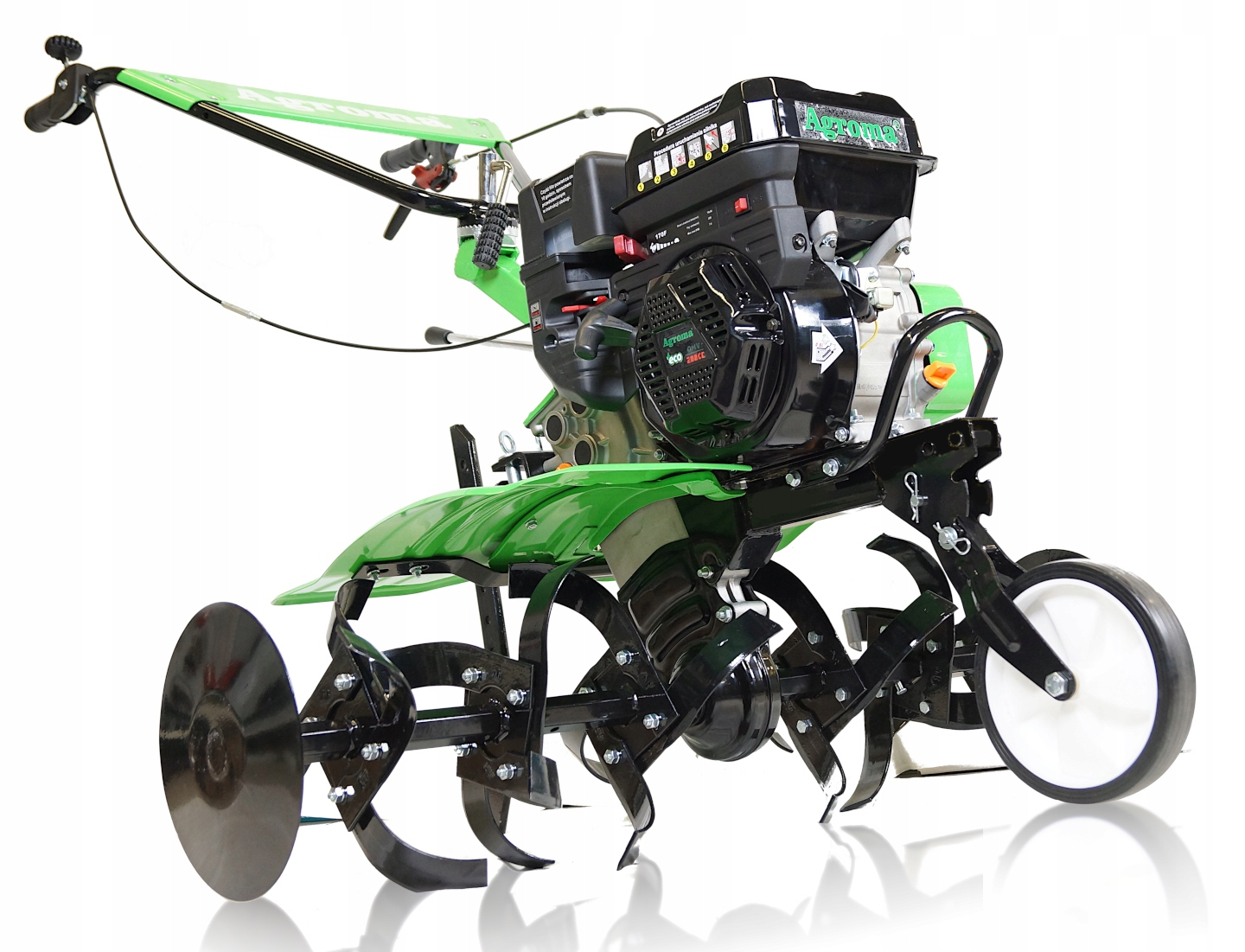 agroma t80112l3g є корисною машиною при вирощуванні ґрунту в саду та на місцях. Це обладнання для розслаблення та вирівнювання великих ґрунтових поверхонь. Ідеально копає землю і провітрює грунт. Велика і сильна машина , призначена для важкої роботи в найскладніших умовах. Модель T80112L3G оснащена двигуном потужністю до 223 см³ генерування 8 к.с.