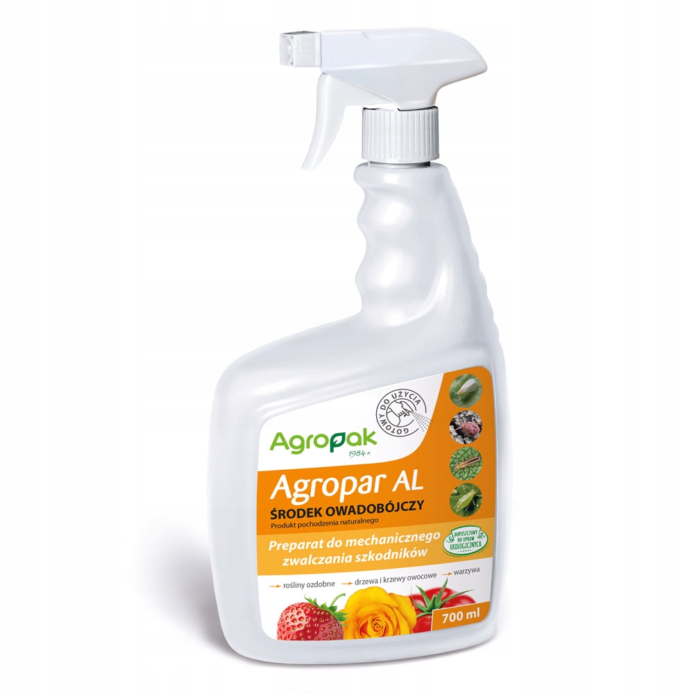 Агропар АЛ - препарат натурального походження у вигляді готового розчину контактної дії для механічної боротьби зі шкідливими організмами - кліщами та комахами. Препарат створює тонке липке покриття, внаслідок чого життєдіяльність шкідників обмежується, зокрема, перешкоджає їхньому пересуванню, харчуванню та розмноженню, що в кінцевому підсумку призводить до їх загибелі. Агропар AL можна використовувати як альтернативу або доповнення до звичайних хімічних засобів, особливо в періоди, коли використання засобів, що містять хімічно активні речовини, неможливе, наприклад, перед збором плодів. Agropar AL кваліфіковано для використання в органічному землеробстві.