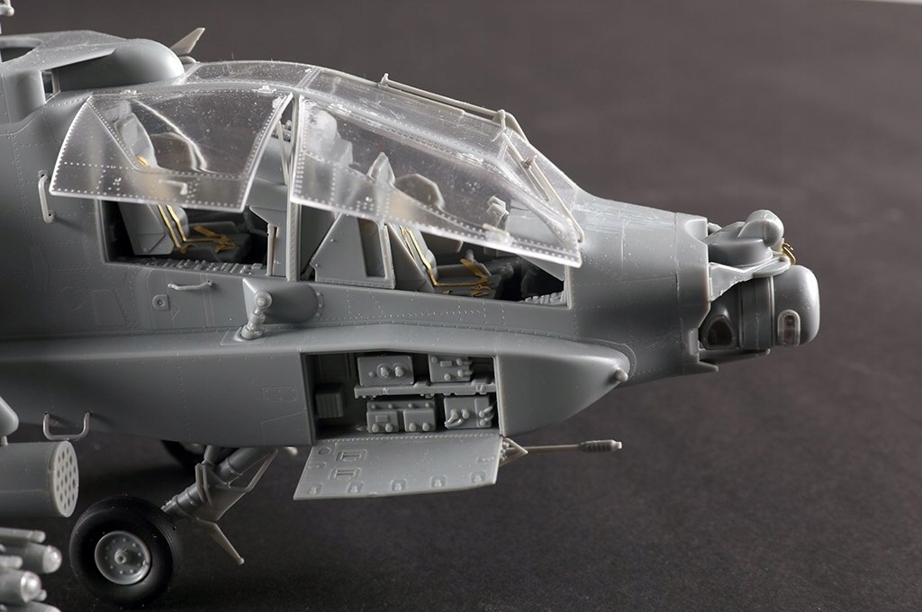 4. ** Функції та функції **: - Модель містить рухомі елементи, такі як головний ротор, ротор хвоста, шасі та гармати M230. - Деталі інтер’єру кабіни точно відтворені, включаючи інструментальні панелі, пілотні крісла та оператор озброєння. - Наклейки з маркуванням різних бойових одиниць, що дозволяють робити модель відповідно до різних історичних версій.