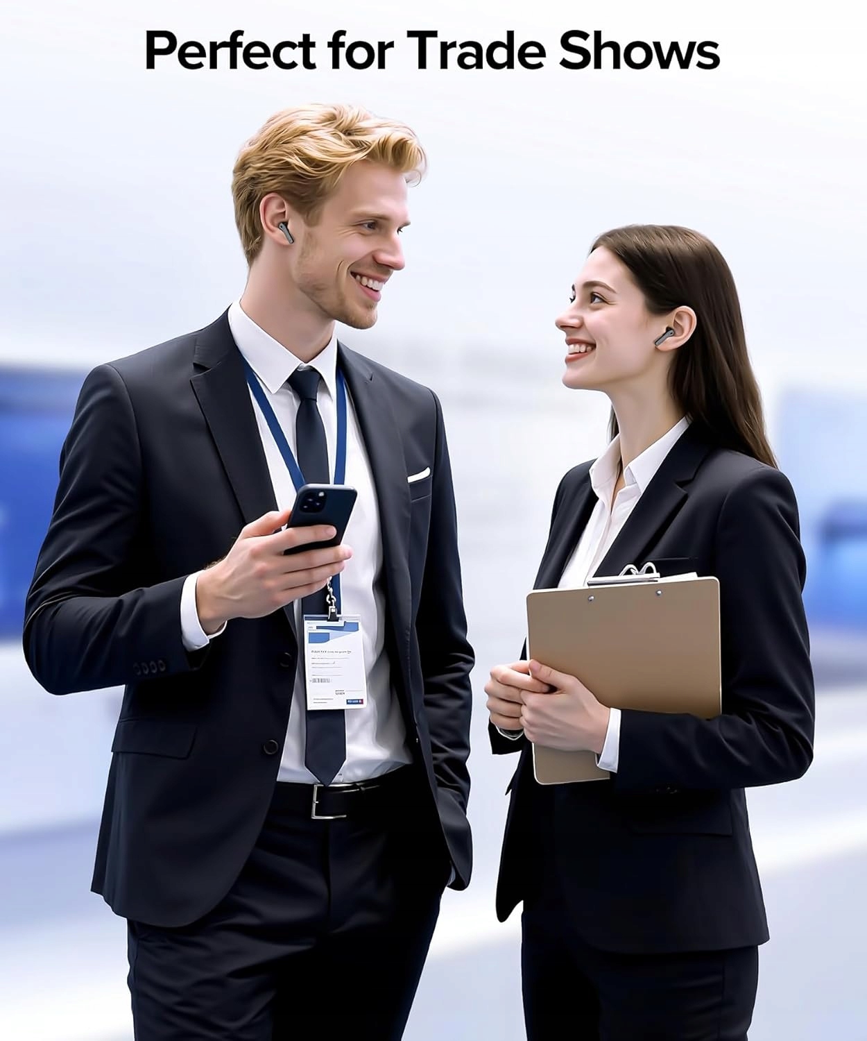 - 164-мовні навушники-перекладачі: створені за допомогою передової технології ШІ, ці бездротові навушники-перекладачі підтримують 164 глобальні мови, включаючи англійську, іспанську, китайську, філіппінську, французьку, японську тощо. Ви можете насолоджуватися миттєвим, точним двостороннім перекладом у реальному часі. Незалежно від того, подорожуєте ви за кордоном, вивчаєте нову мову, берете участь у відеозустрічі чи керуєте глобальним бізнесом, ці навушники для перекладу в режимі реального часу дозволяють вільно й впевнено спілкуватися в будь-якій культурі без бар’єрів.