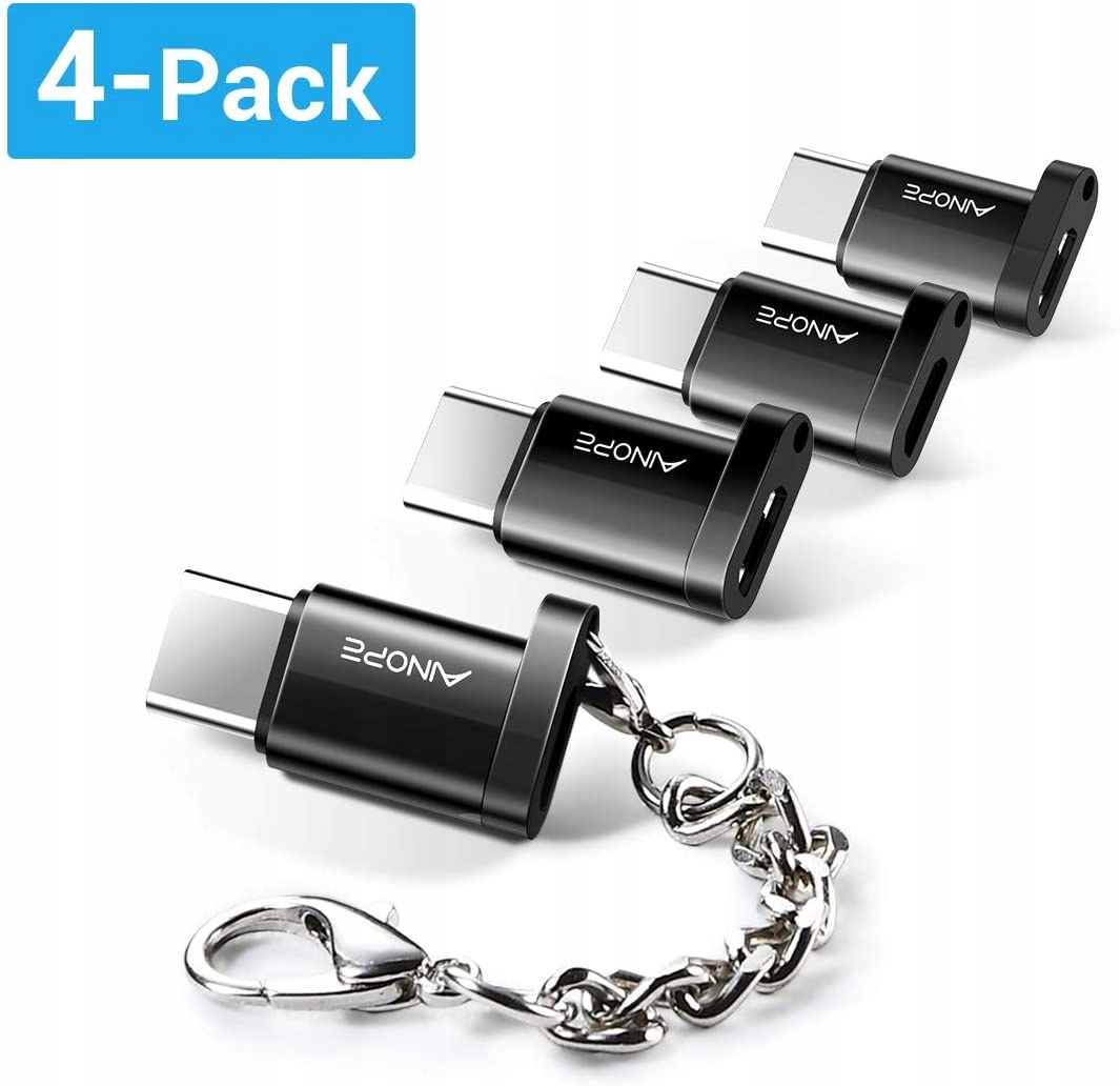 Ainope USB-C адаптер, перетворювач типу C (чоловіки) на мікрок USB (жіночі) синхронізації зарядки для Galaxy S10 Note 9, Pixel 3 та більше (чорні, 4 штуки)