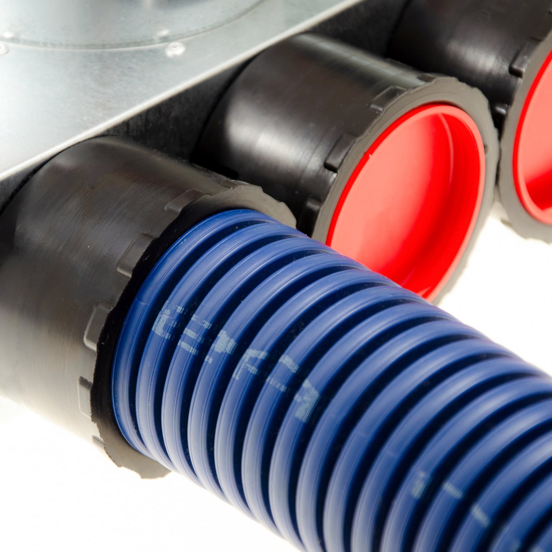 Наші колектори оснащені інноваційними, самостійними гумовими з'єднаннями , які виконують функцію прокладки, усуваючи необхідність використання додаткових аксесуарів. Просто просуньте трубу до першого вуглецю, а гнучкий матеріал негайно адаптується до форми, забезпечуючи міцне та щільне з'єднання. Це не тільки заощадження часу, але й впевненість у тому, що установка не містить витоків і відповідає найвищим стандартам ефективності.