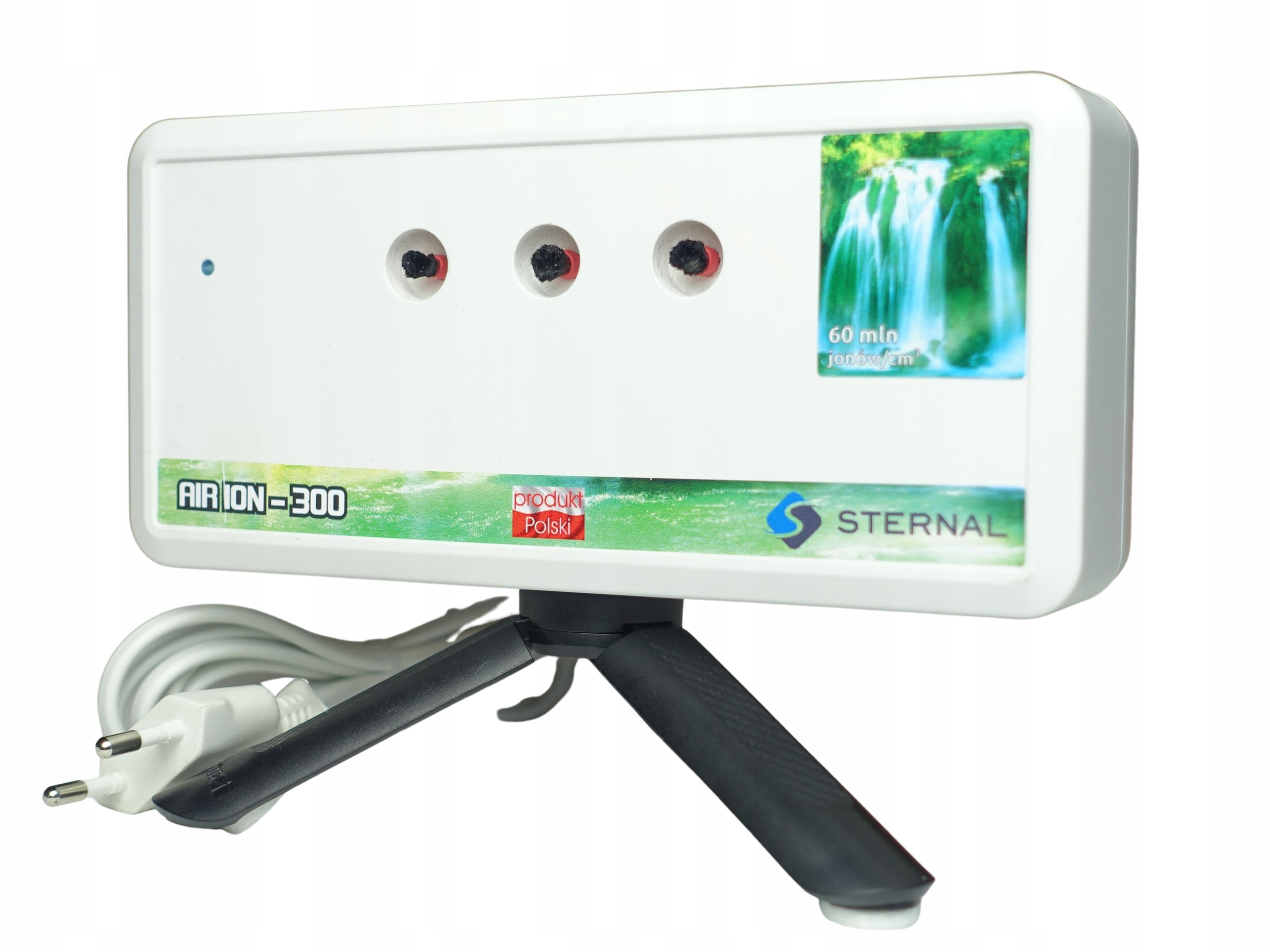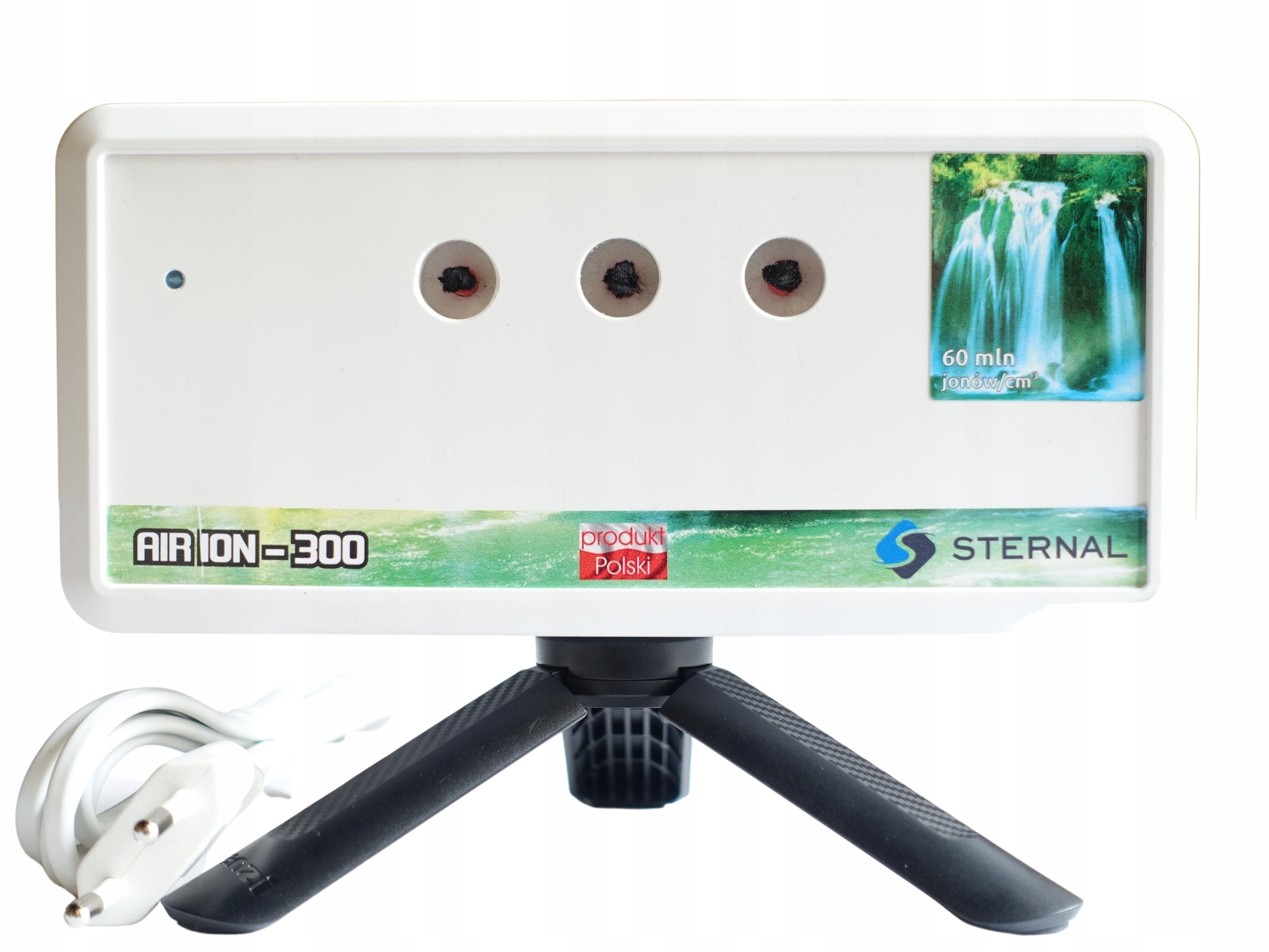 ІОНІЗАТОР AIR ION 300 - НОВА МОДЕЛЬ. Місткість 60 млн. негативних іонів/см3. Видаляє з повітря пил, сигаретний дим, пилок, віруси, бактерії та кліщів. Він має цілющі властивості і підтримує традиційні засоби лікування багатьох захворювань. Загально зміцнює організм - повітря, насичене негативними іонами, можна знайти в хвойних лісах і на випускних вежах у Цехоцінеку.