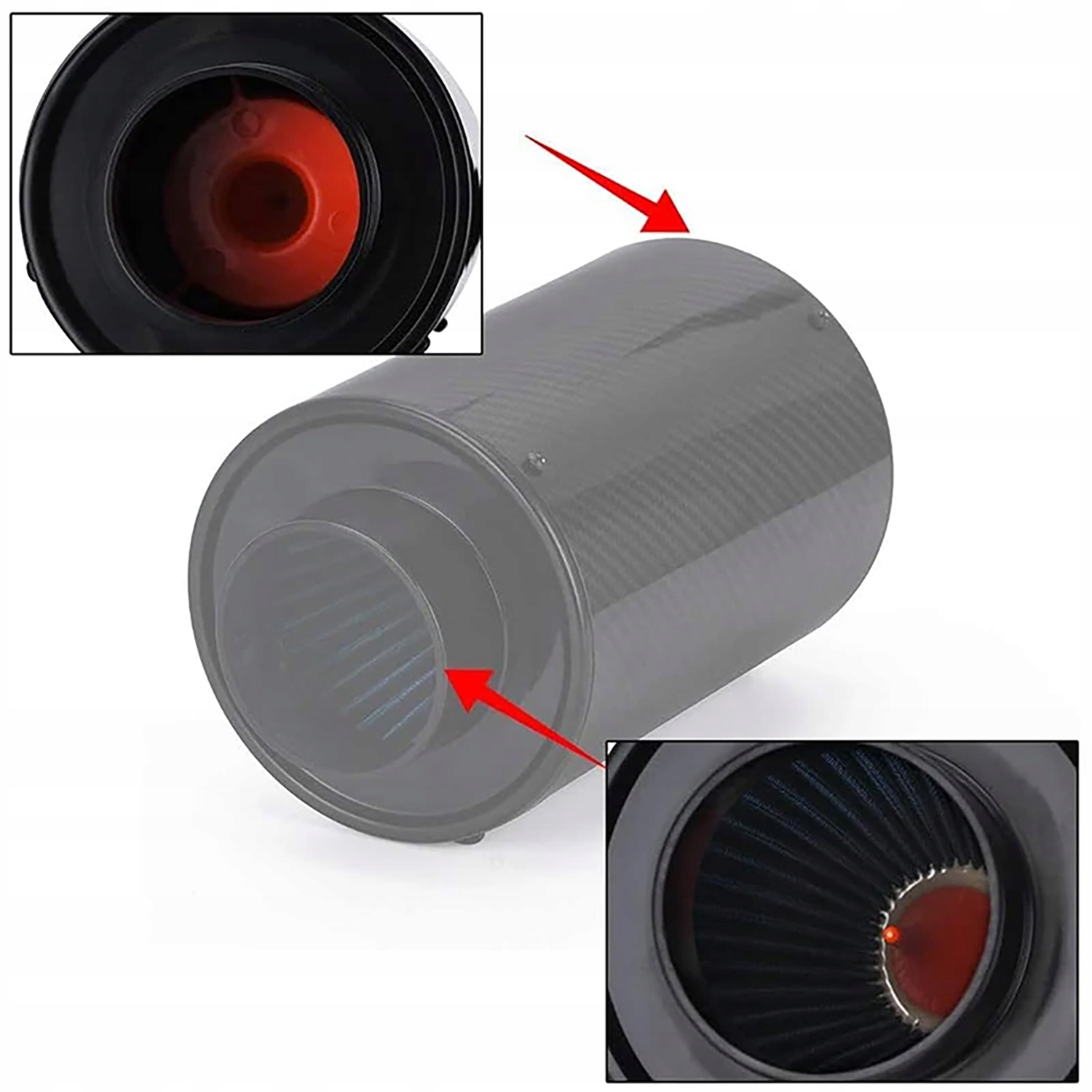 СИСТЕМА ВПУСКА AIRBOX, КОНУСНИЙ ФІЛЬТР У КОРПУСІ 76 ММ CARBON KIT