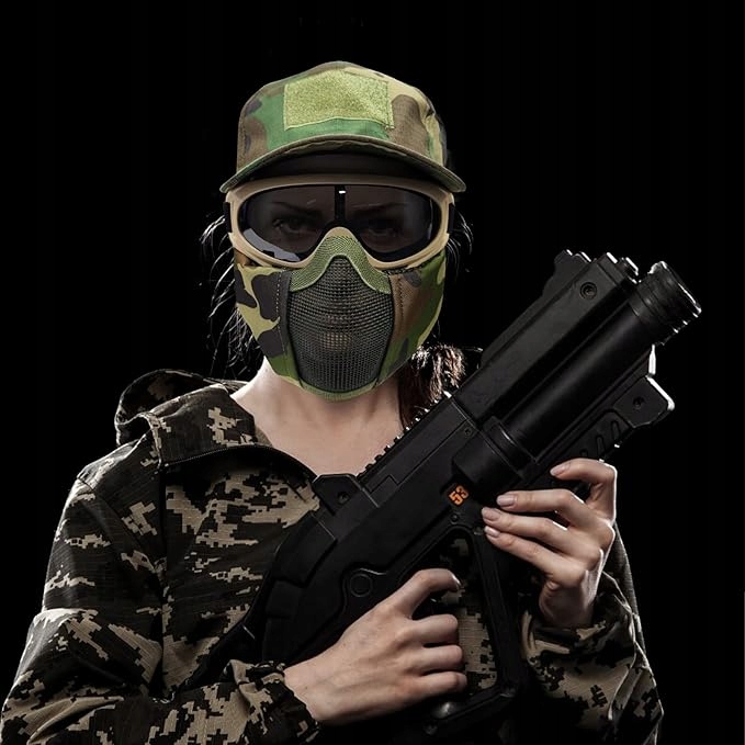 Airsoft Half -mask на обличчі з окулярами та шапкою