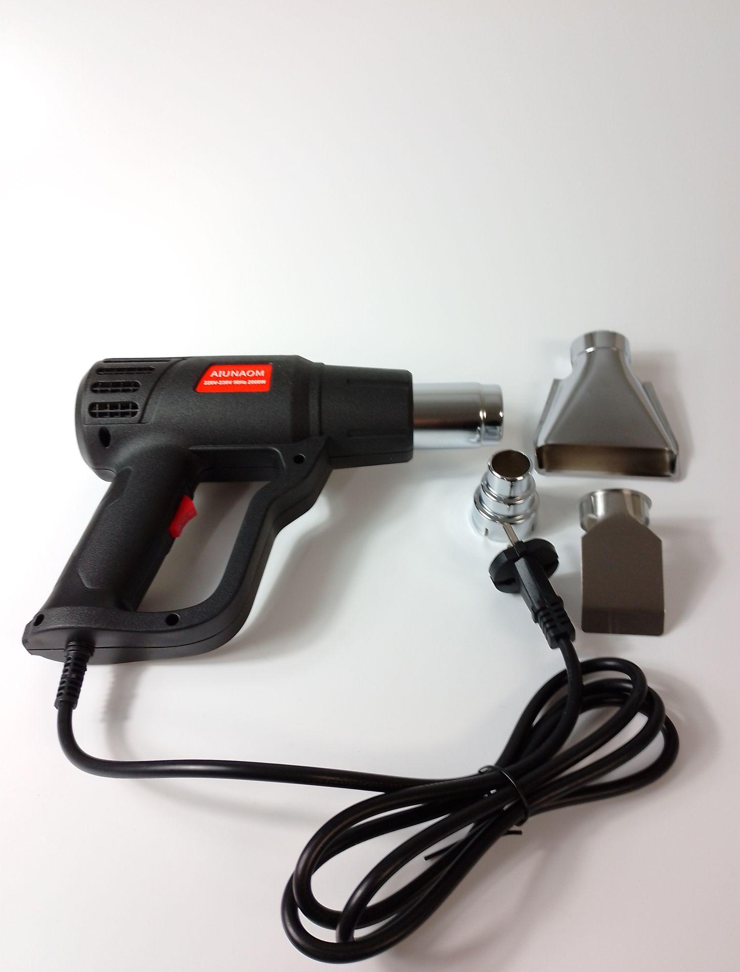 [Сильний пістолет з гарячим повітрям 2000 Вт] Потужний двигун 2000 Вт швидко нагріває лопатки турбіни і забезпечує сильний потік повітря. Час нагрівання 1,5 секунди дозволяє швидко досягти оптимального стану під час роботи та підвищення ефективності роботи. Ергономічна ручка відповідає ергономіці, завдяки чому операція зручніша та зручніша, при цьому ефективно запобігає випадковому контакту з насадкою