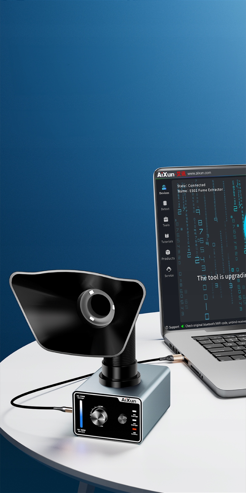Підключення вашого пристрою до екосистеми AiXun відкриває перед вами абсолютно нові можливості. Пилосос AiXun автоматично запускається, коли ви піднімаєте паяльне жало, що позбавляє від необхідності ручного керування та дозволяє зосередитися виключно на поточній роботі. Ця функція не тільки економить час, але й підвищує ефективність і точність діяльності, створюючи цілісну та вдосконалену систему роботи.