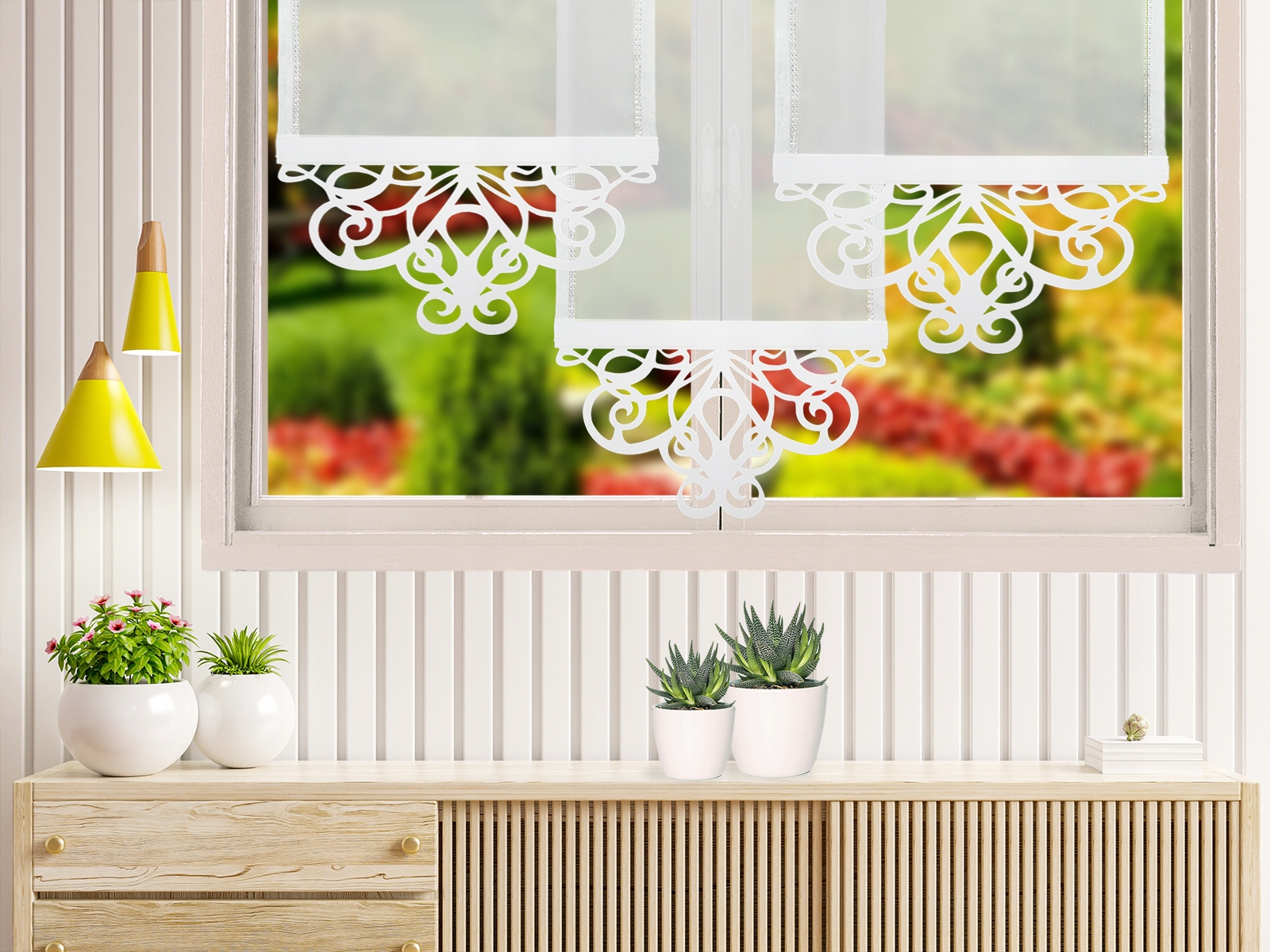 Декоративний ажур з сучасним дизайном для штор або панно є дуже модним елементом декору вікон. Прикріплений до нижньої частини штори, він дозволить швидко та ефектно трансформувати будь-яку штору. Це must have серед аксесуарів для штор і панно. Це чудова прикраса не тільки для вікна, а й для всього приміщення.