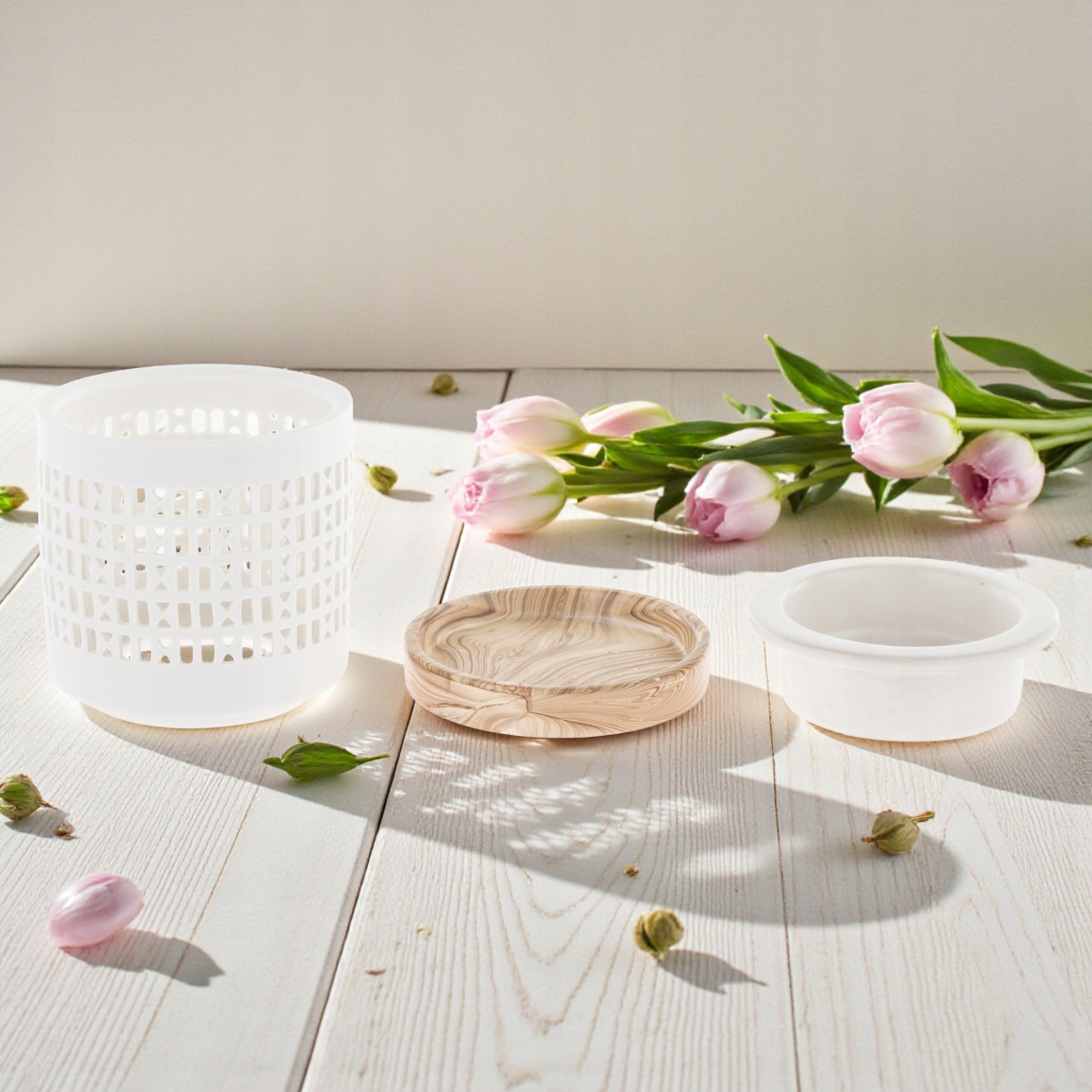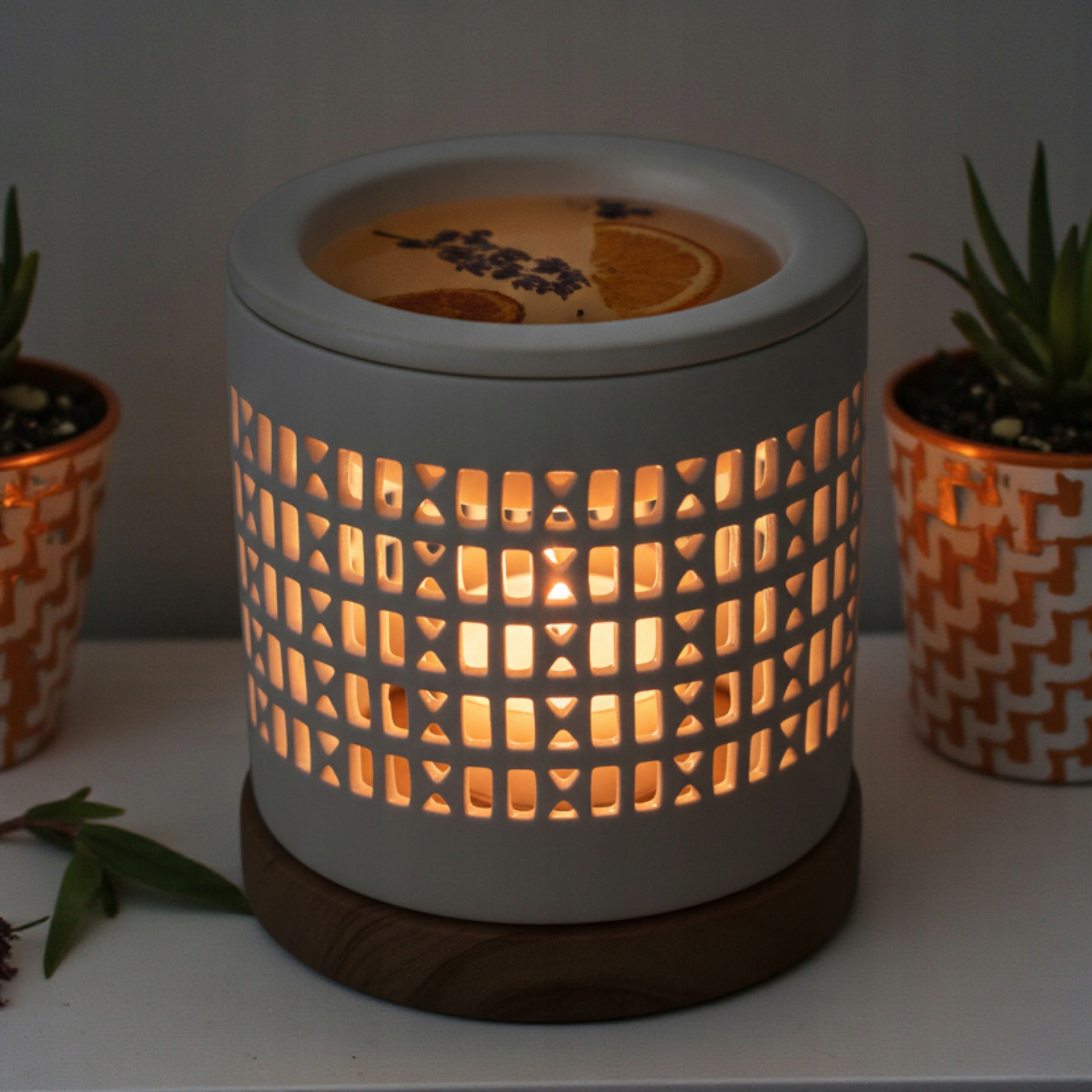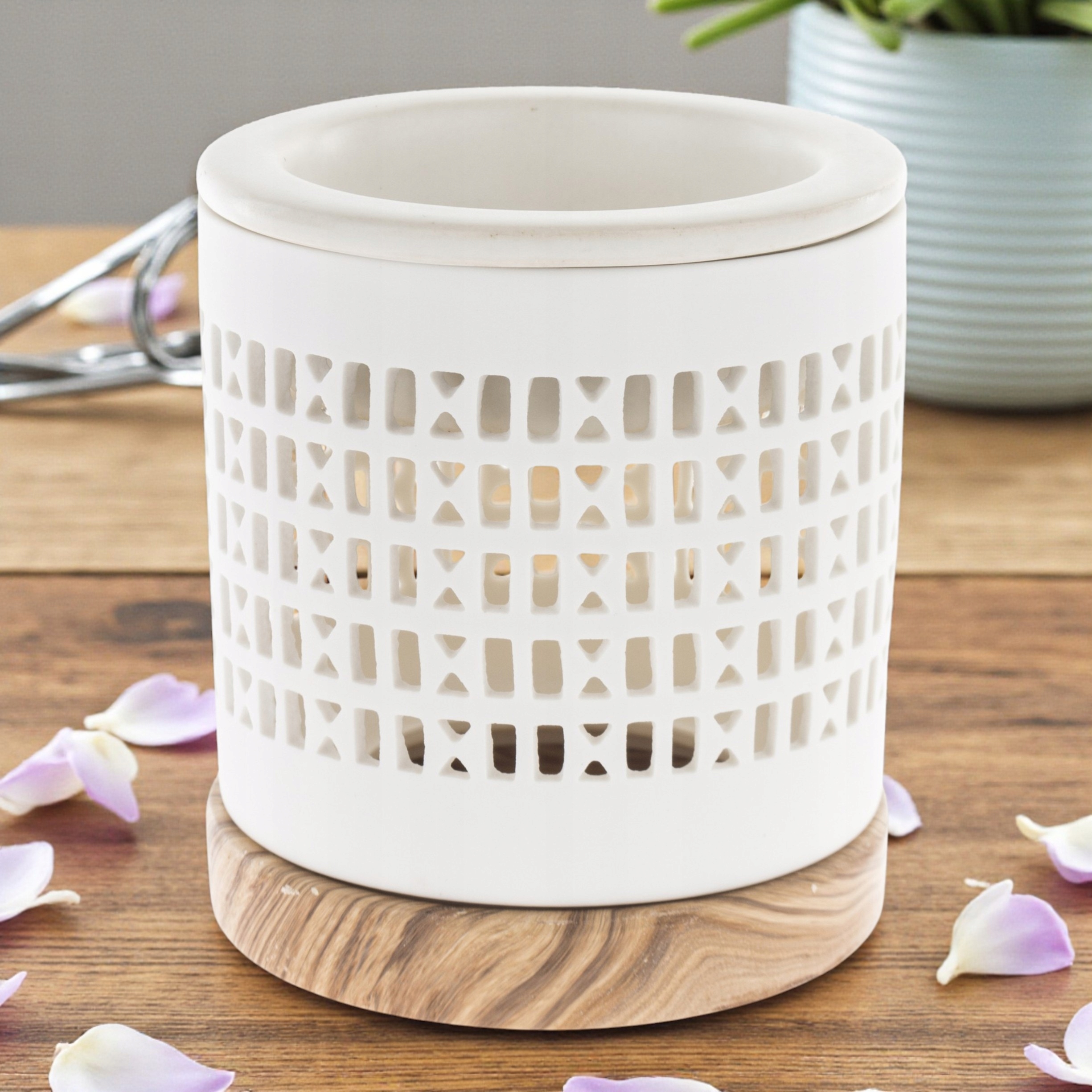 Мінімалістичний аксесуар, який поєднує аромат, світло та естетику. Ефект натурального дерева - довговічність кераміки - позачасовий стиль.